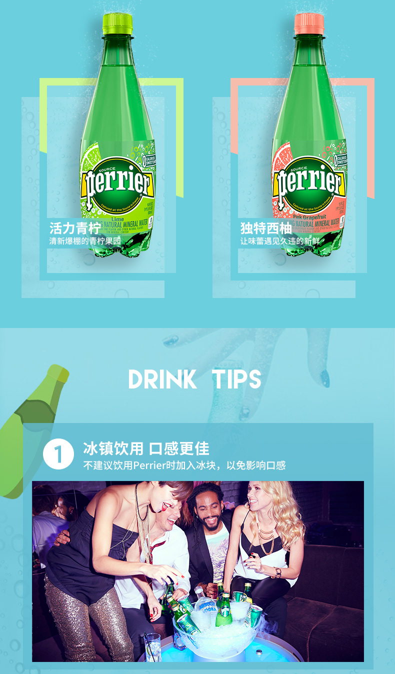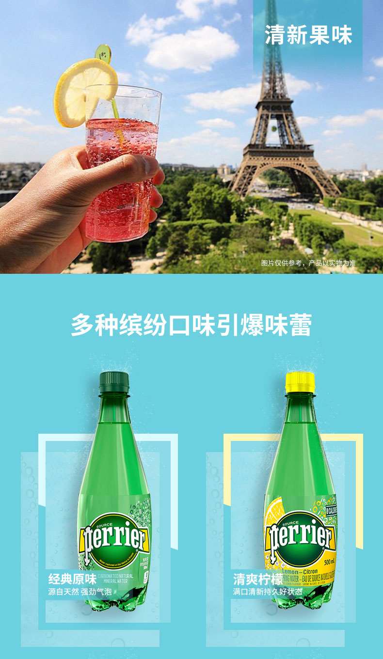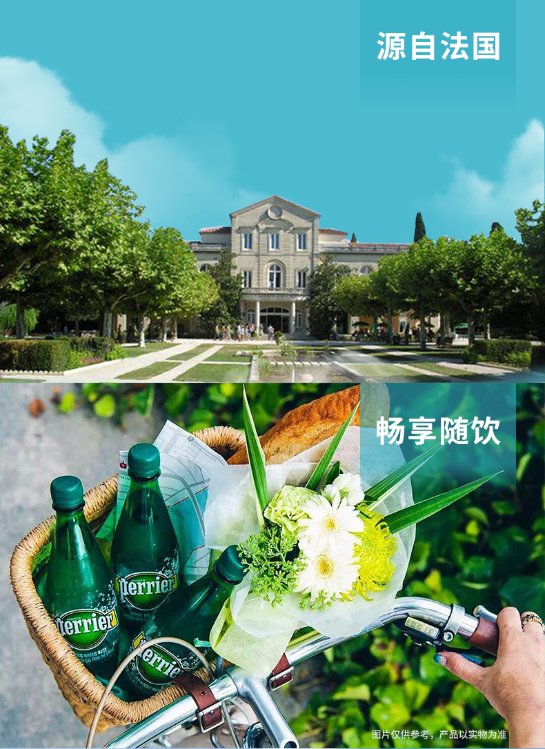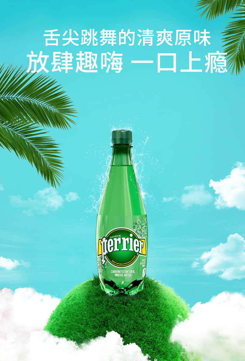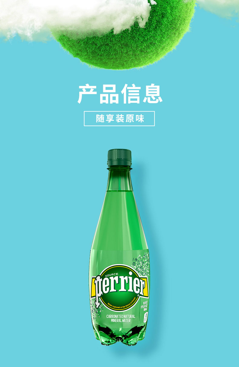 法国巴黎水(Perrier)无糖气泡水充气天然矿泉水塑料瓶 500ml*24
