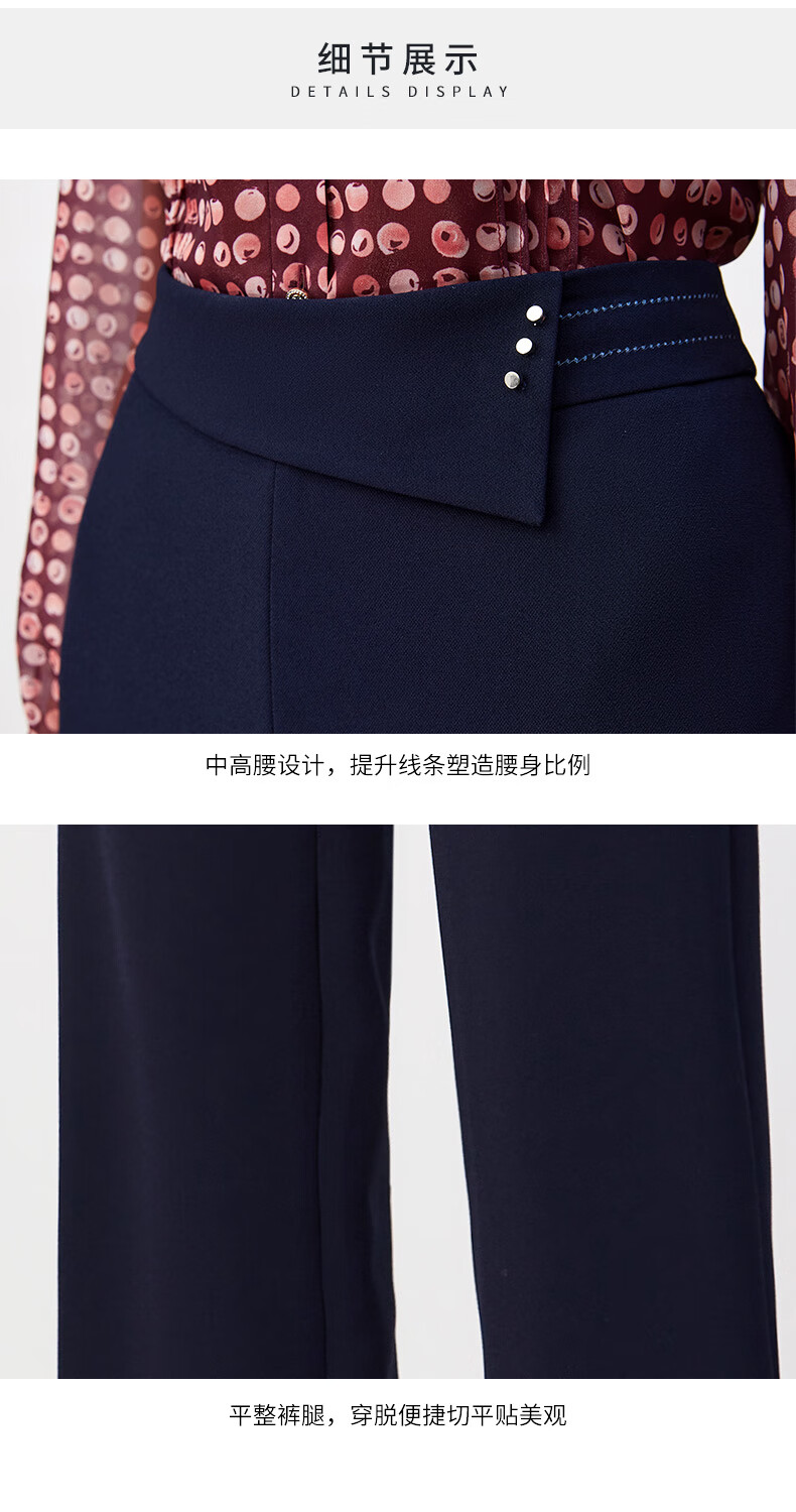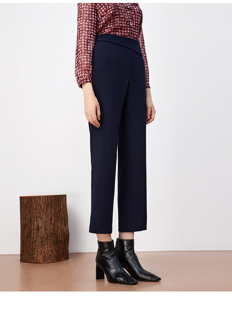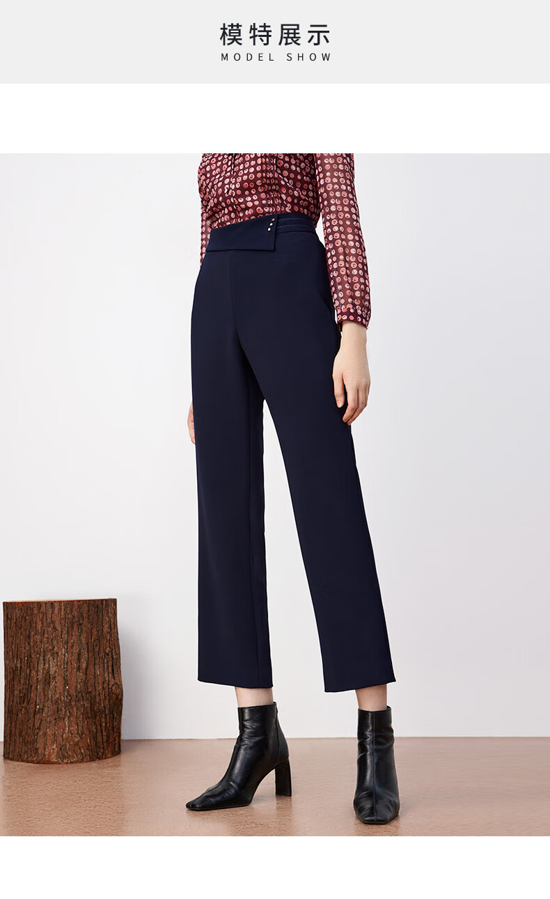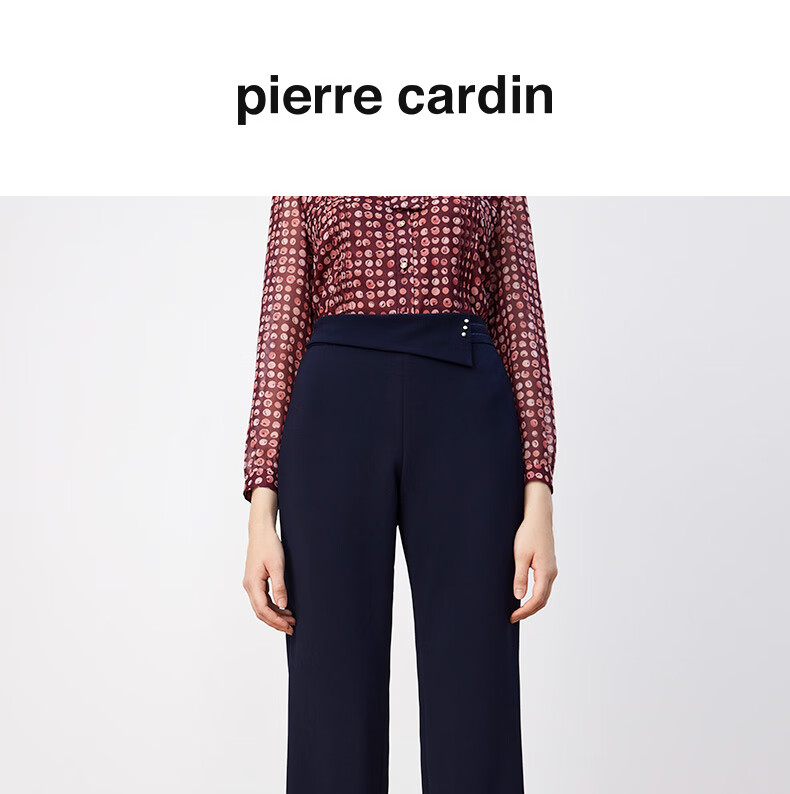 皮尔卡丹女装裤子休闲裤藏蓝色高腰显瘦长腿裤直筒裤P3326T3983N0