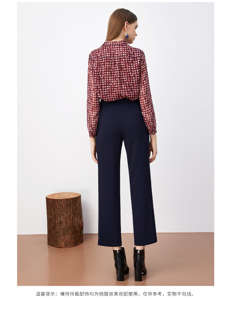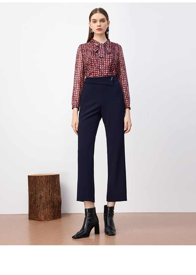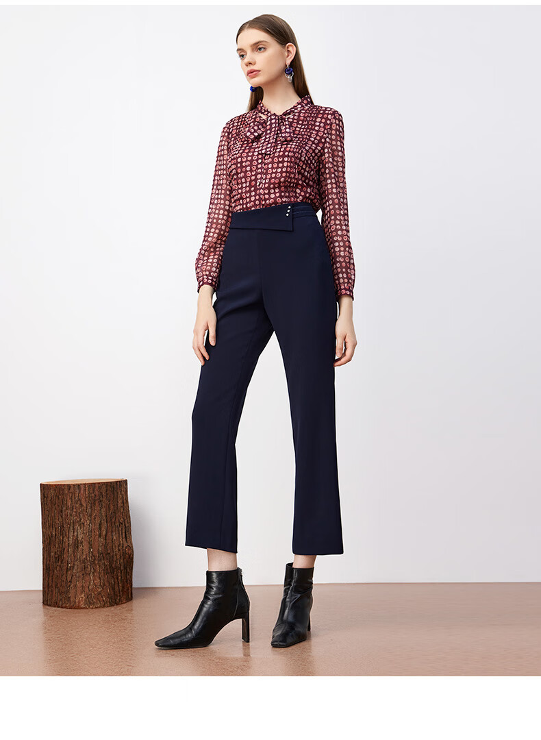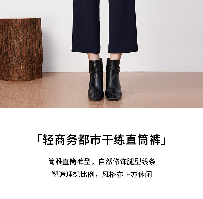 皮尔卡丹女装裤子休闲裤藏蓝色高腰显瘦长腿裤直筒裤P3326T3983N0