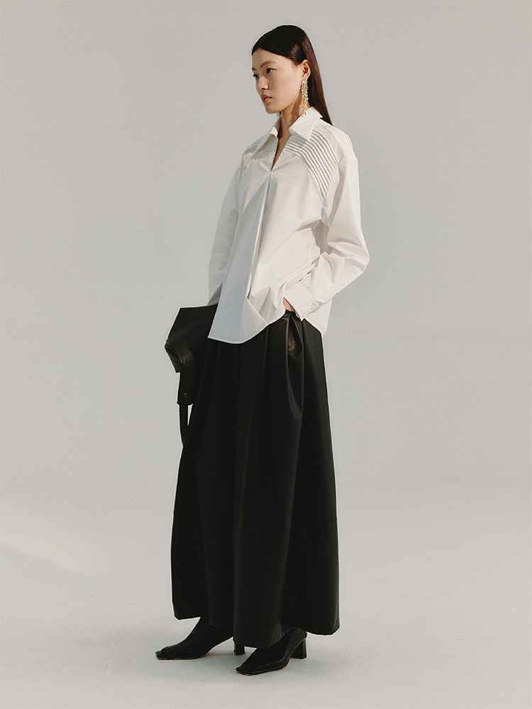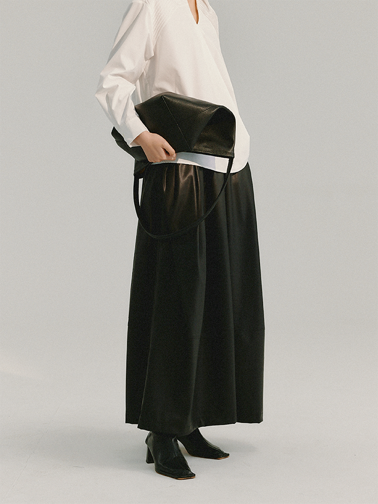 LIYIHAN 简约褶皱皮半裙 Y233Q05490
