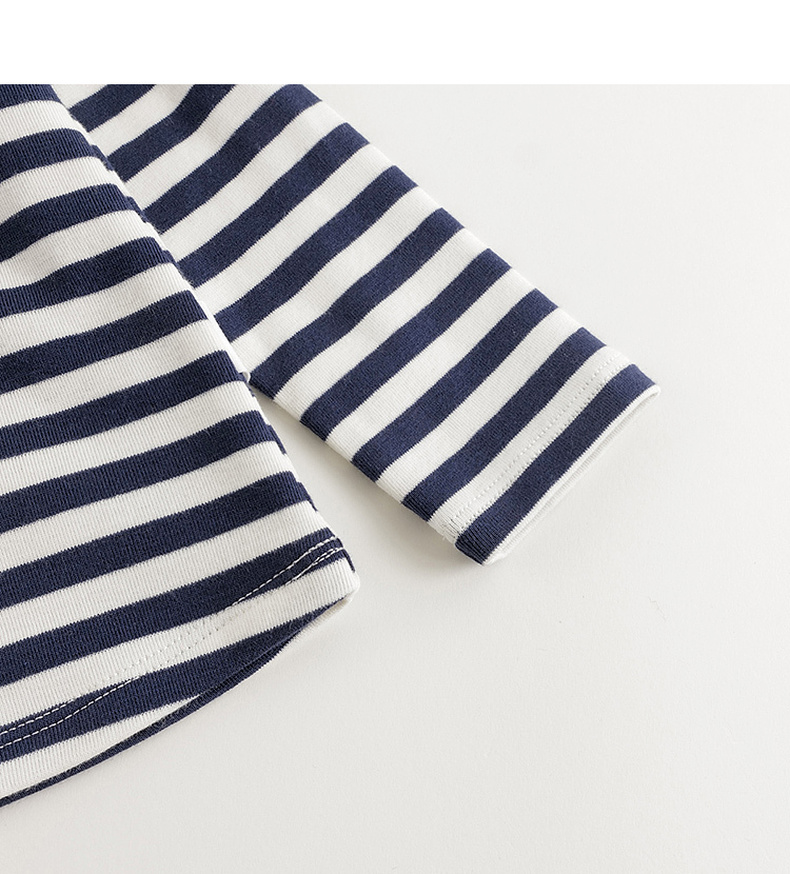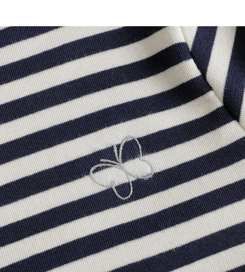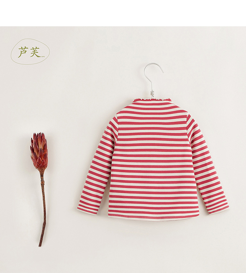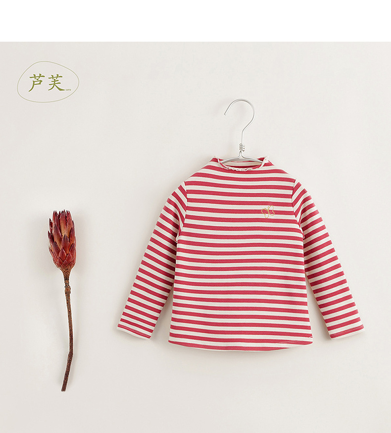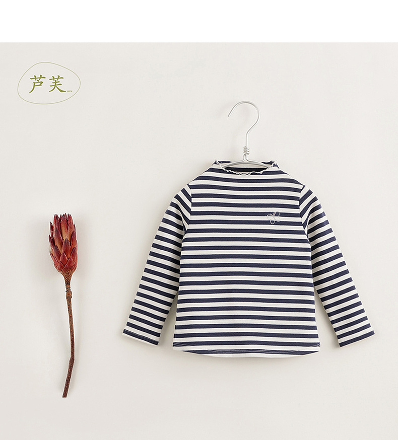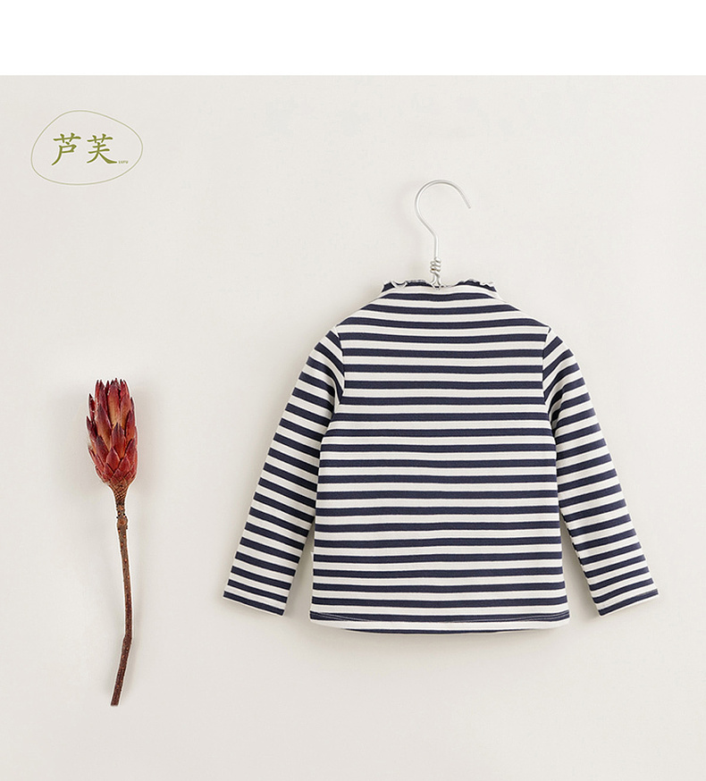 【马克珍妮 芦芙】秋冬新款 条纹花边立领柔软T恤打底衫 231706