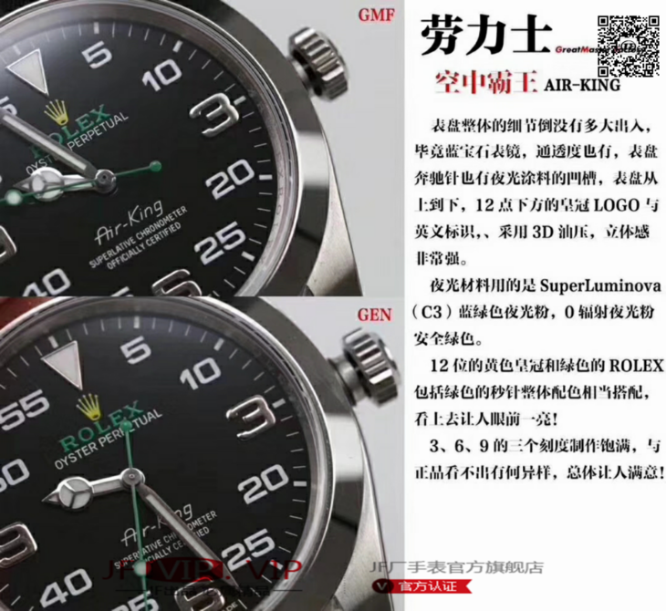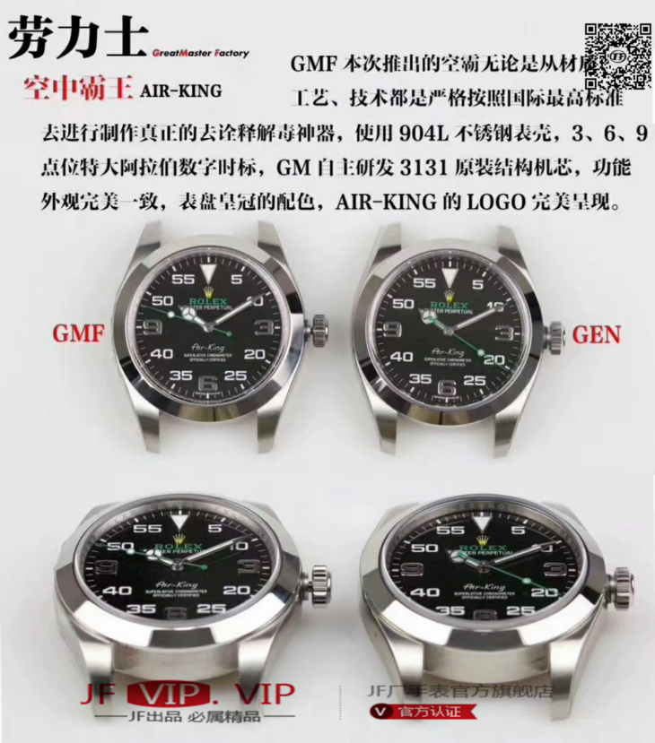 GMF新品《劳力士2016年度新蚝士恒动空中霸王Oyster Perpetual Air-King》男士腕表,精钢表带,自动机械机芯,密底。