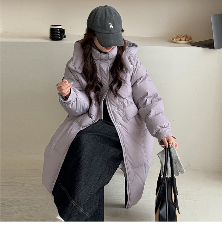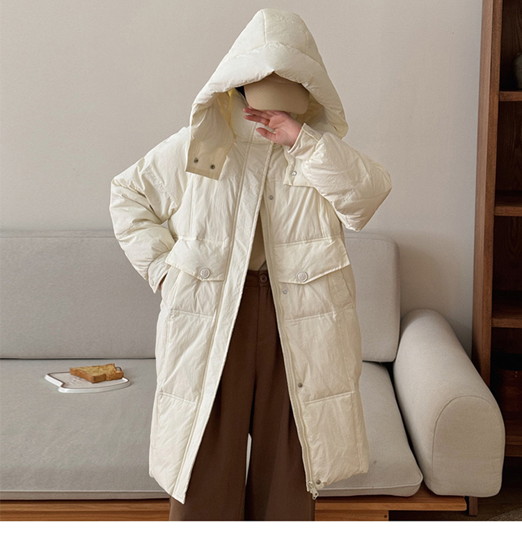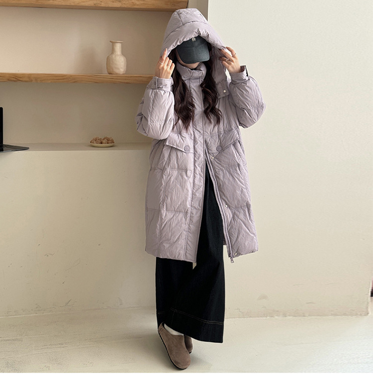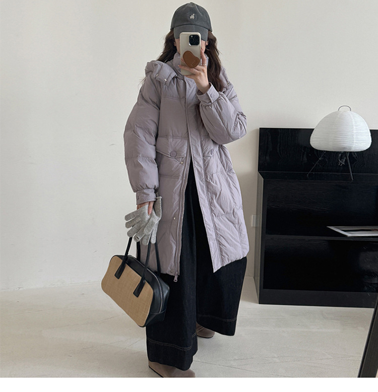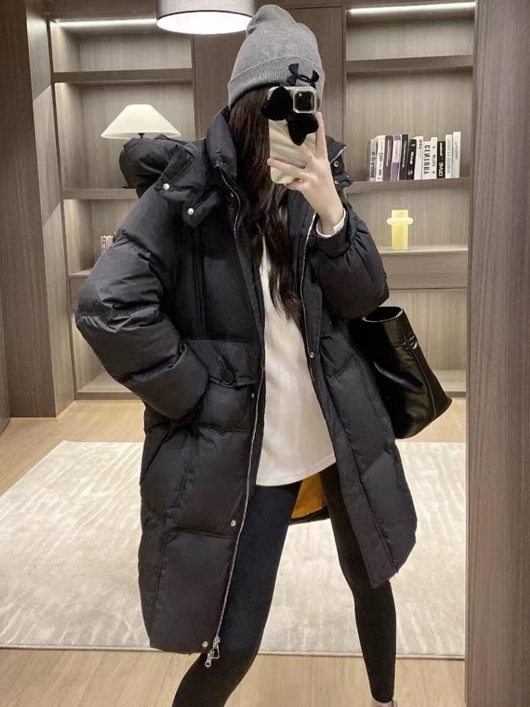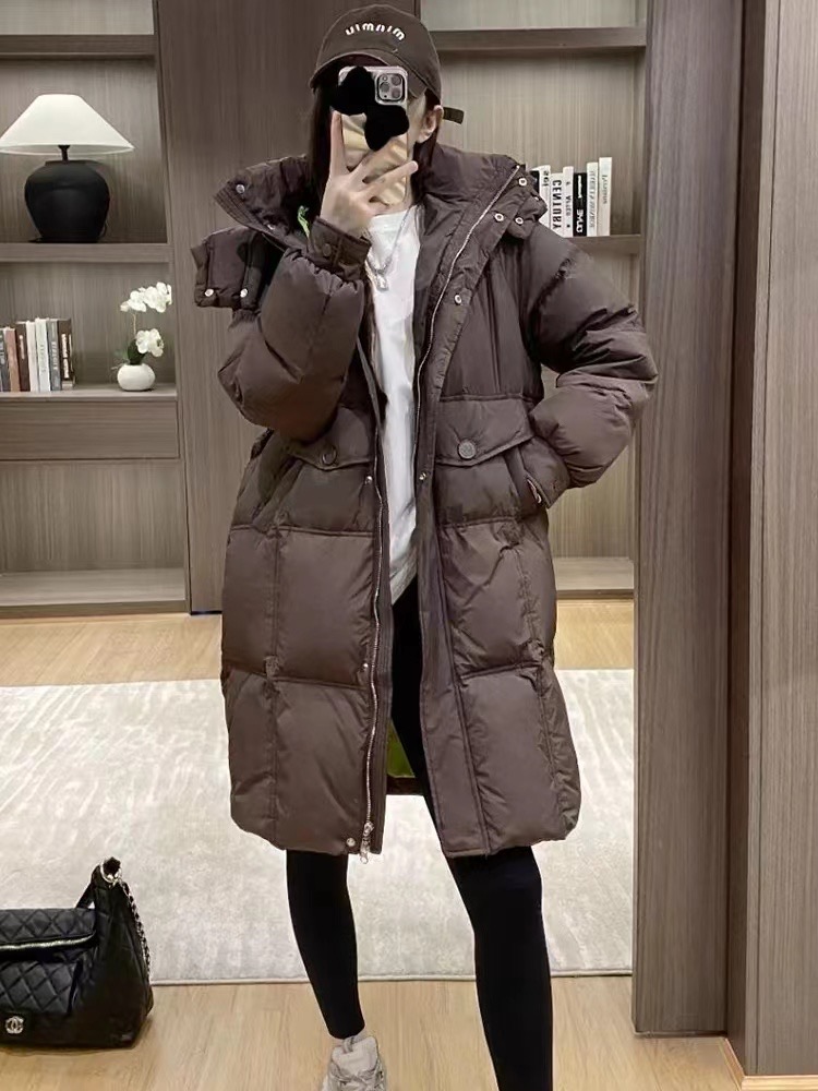 【YW】无忧购 冬季新款韩版长款连帽羽绒服女宽松加厚鸭绒外套24023(截单后3-5天发货)