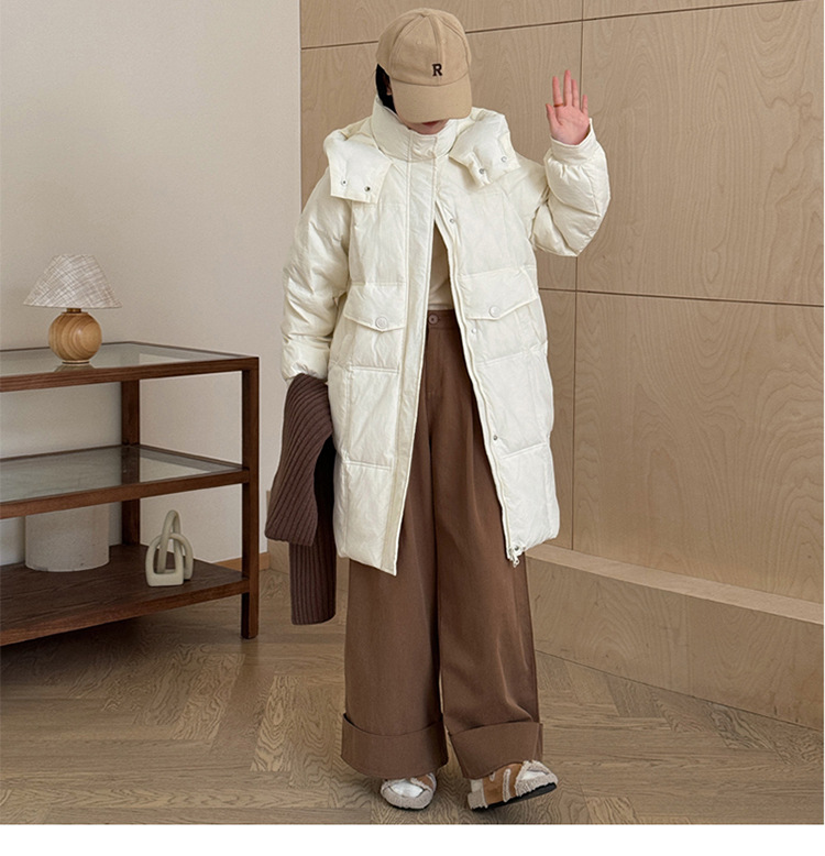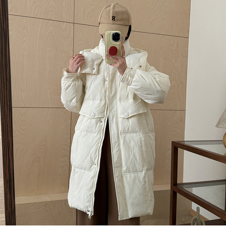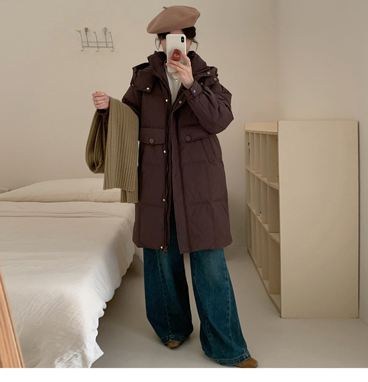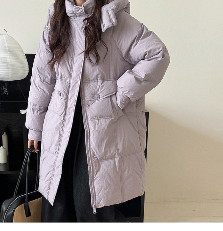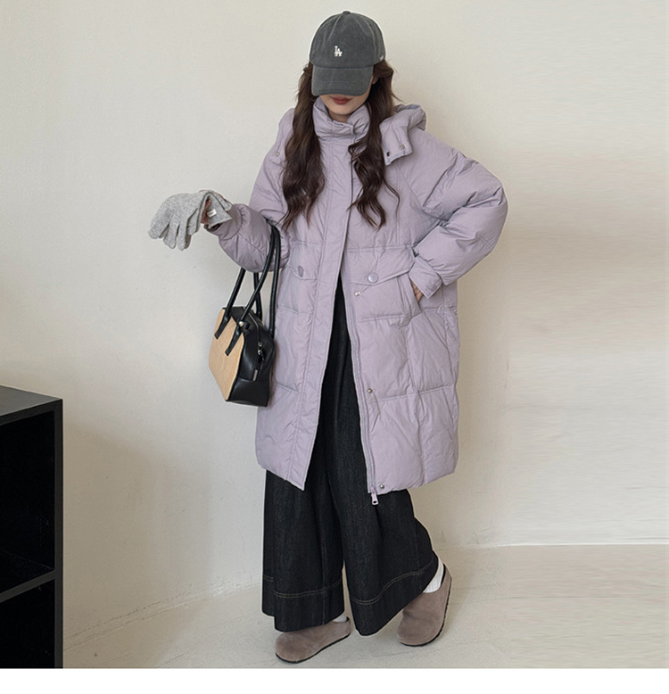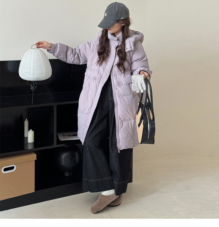 【YW】无忧购 冬季新款韩版长款连帽羽绒服女宽松加厚鸭绒外套24023(截单后3-5天发货)