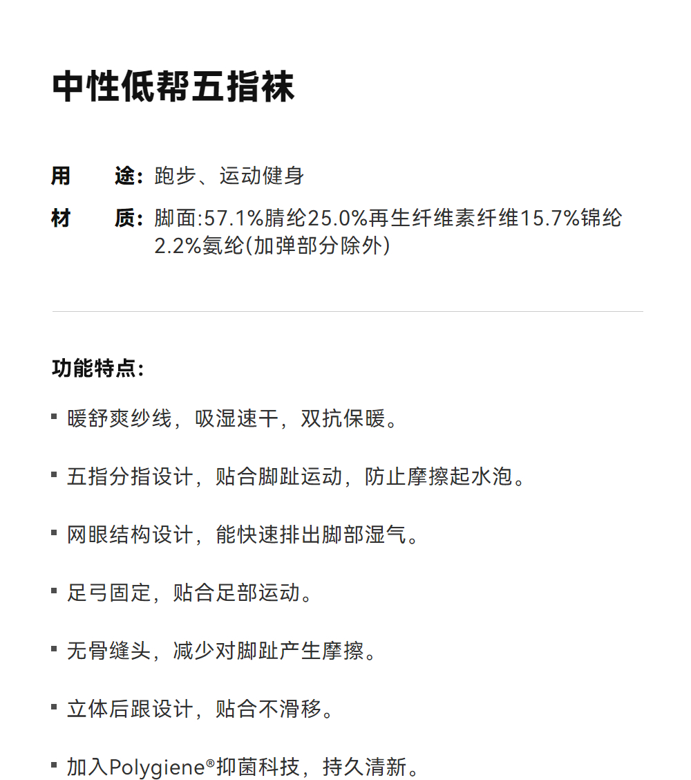KAILAS凯乐石 中性低帮五指袜 KH2502004【Z】