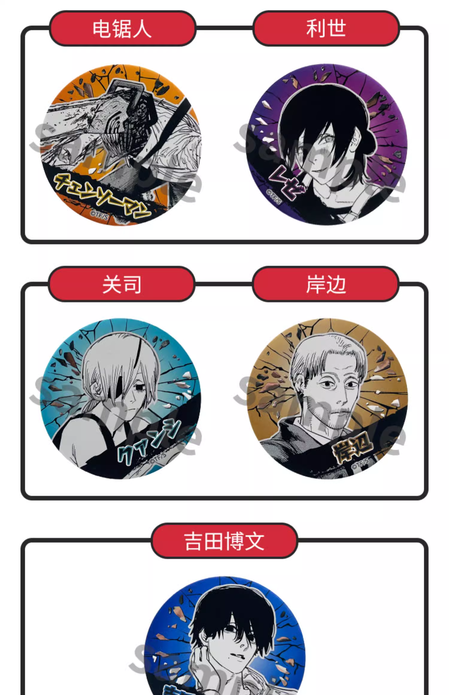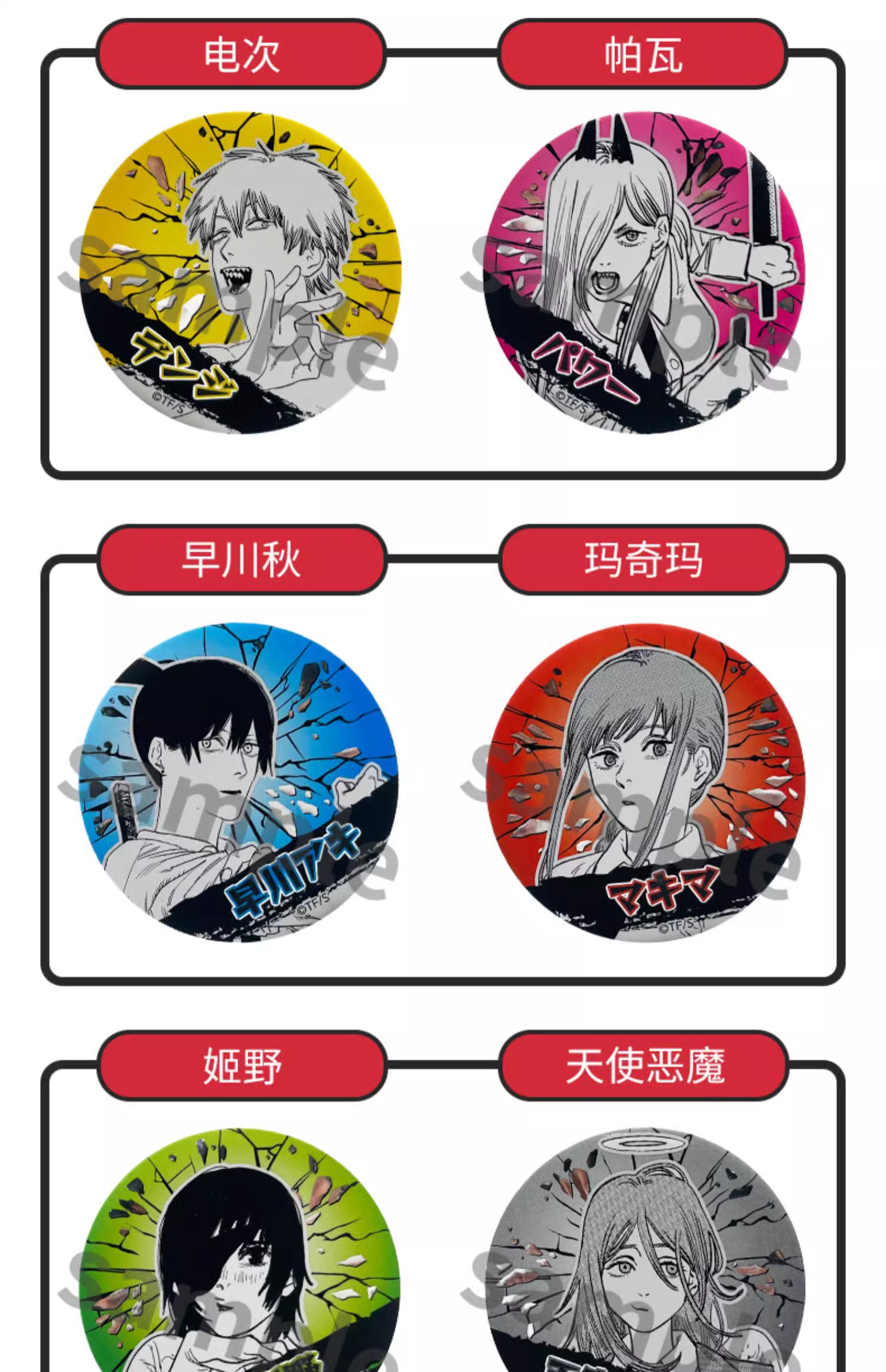 SUNRISEPOP 电锯人 徽章盲盒随机SRPC4897127771540