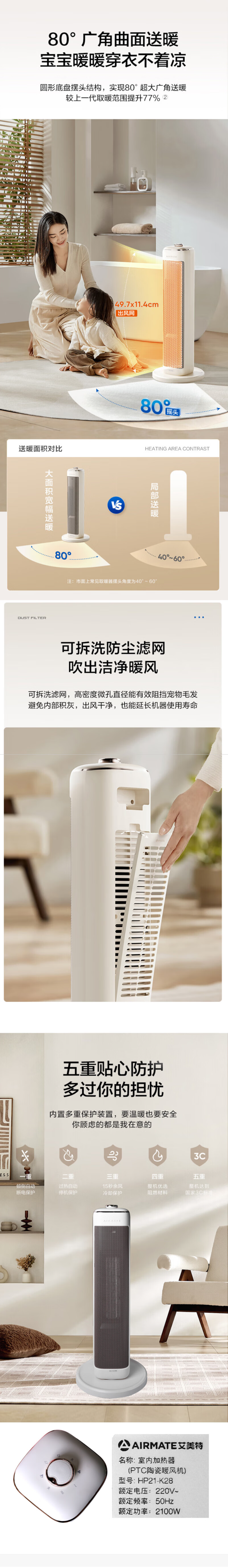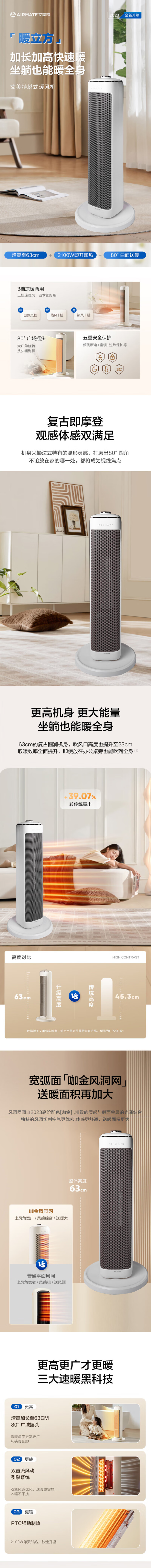 艾美特(510231)(AIRMATE)PTC陶瓷暖风机HP21-K28(活动机)
