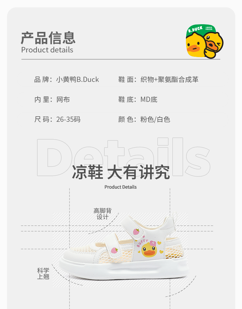 B.Duck小黄鸭童鞋夏季儿童运动鞋26-35 F1385045