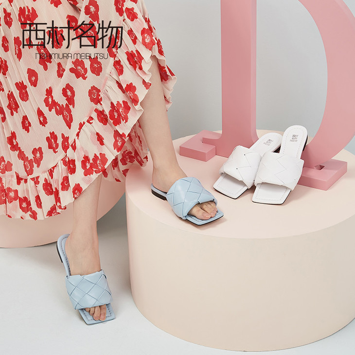 西村名物春夏新品彩色时尚潮流编制拖鞋凉鞋T20BJ23181