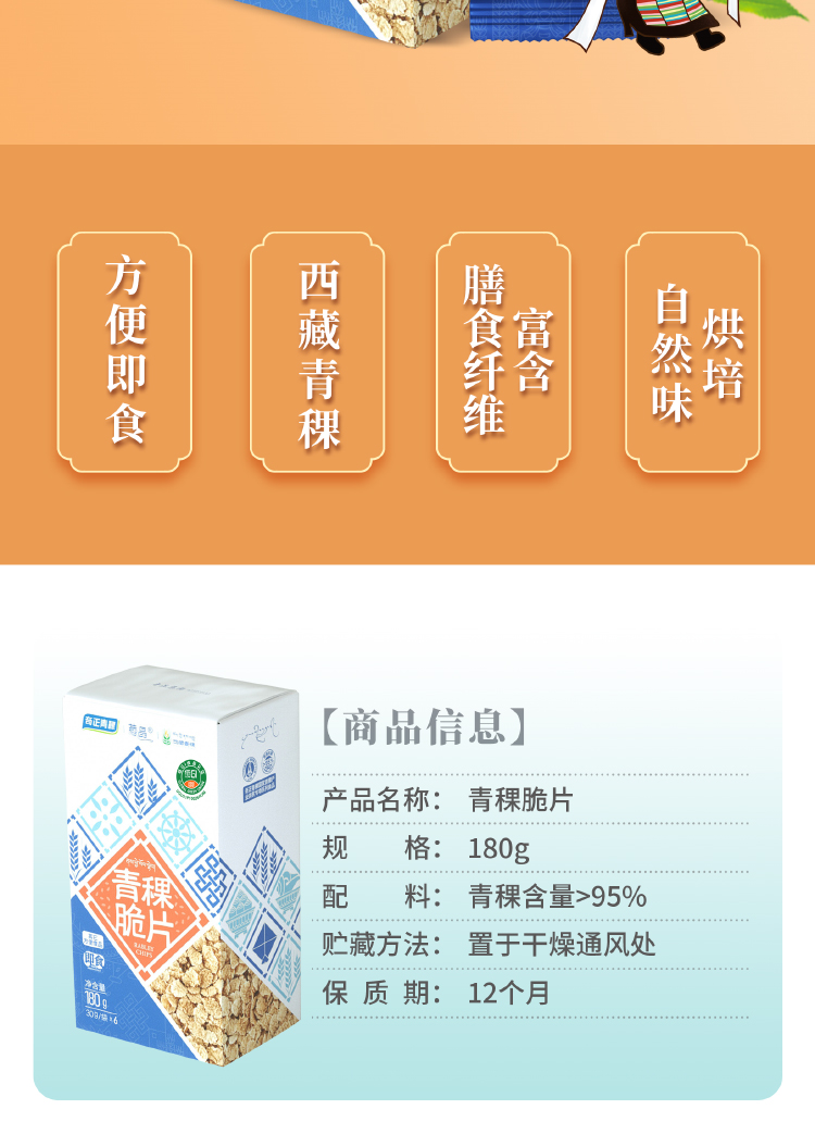 奇正青稞 青稞燕麦优果脆 椰香果味 双优谷物 营养多多 200g/袋*2