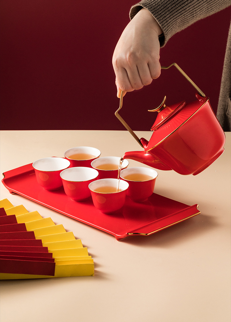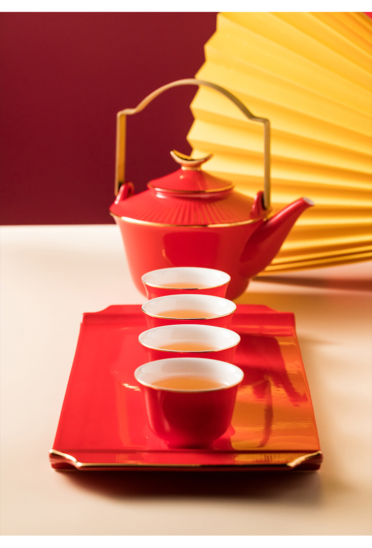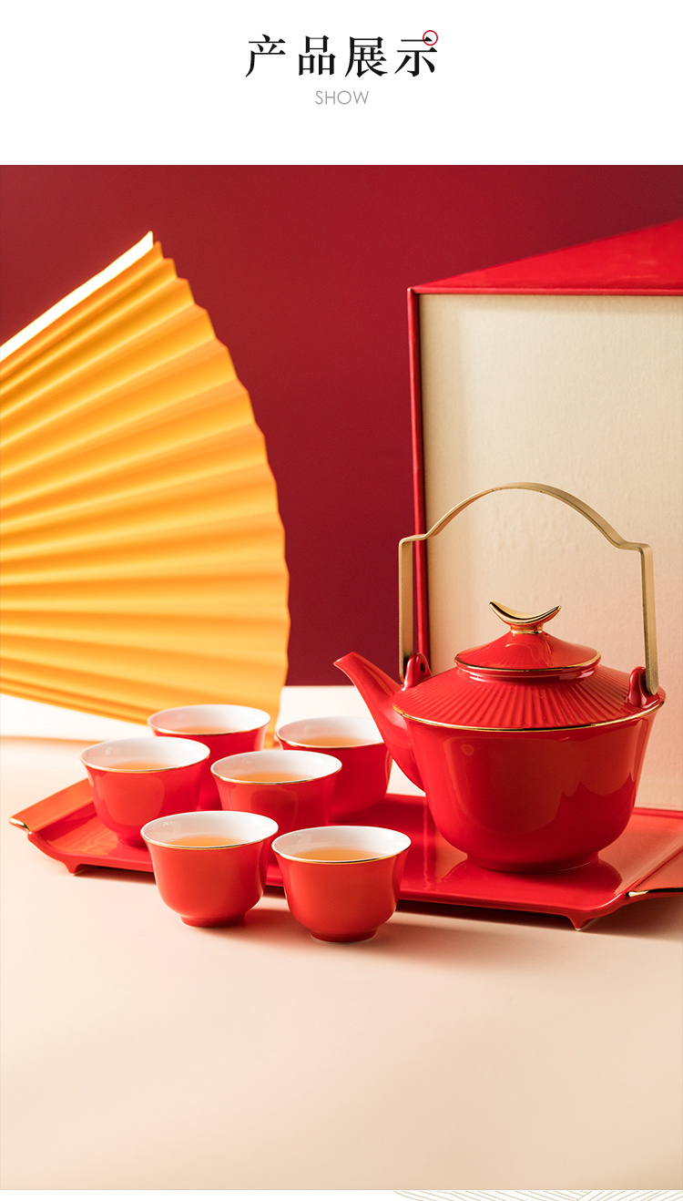 5头天元提梁壶——繁花茶具套组