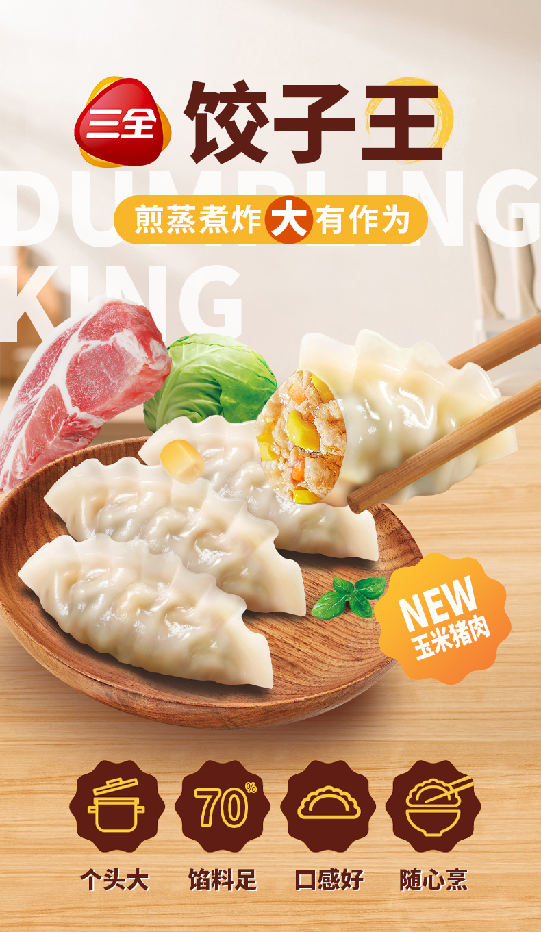 希杰CJ王饺子玉米猪肉(900g/包 36个)生产日期: 1月
