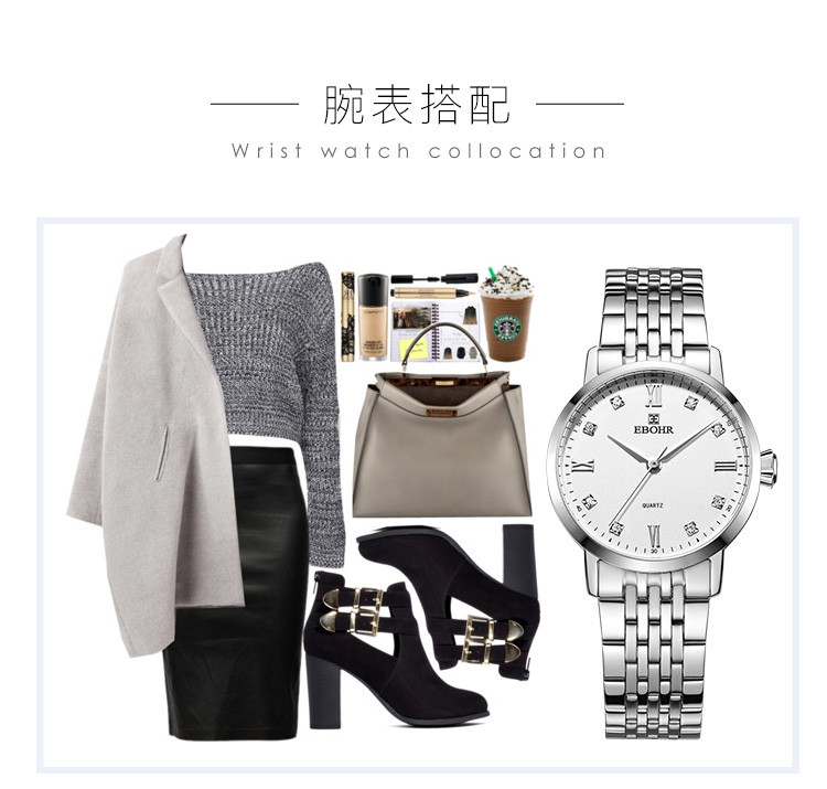 依波表EBOHR 大师系列经典时尚女士石英腕表30米防水5029