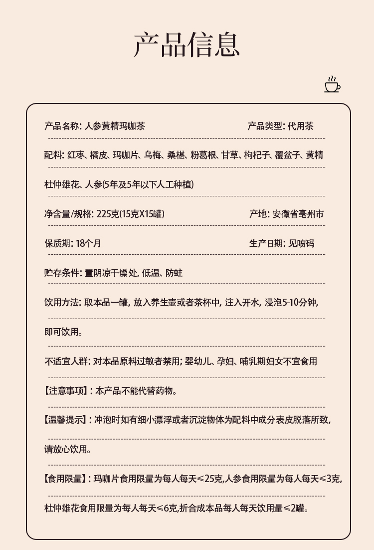逸茗道红参阿胶女神茶人参黄精玛咖调理养生茶熬夜茶包