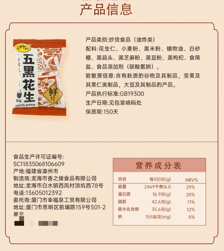 台竹乡五黑花生(蒜味)/1袋(约15小包,共300g)生产日期:26年3月