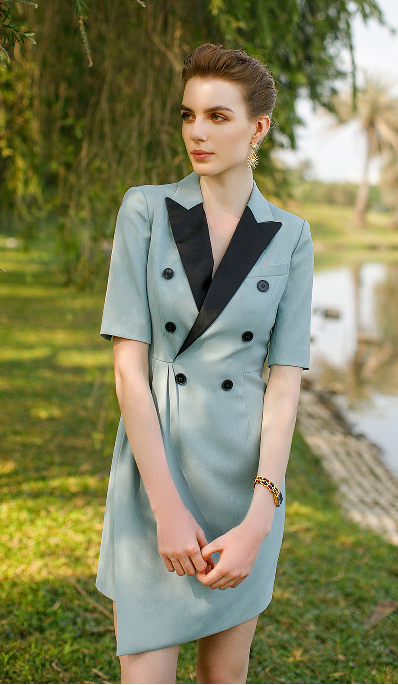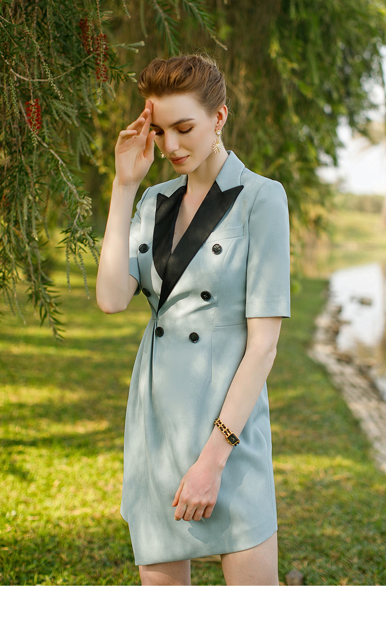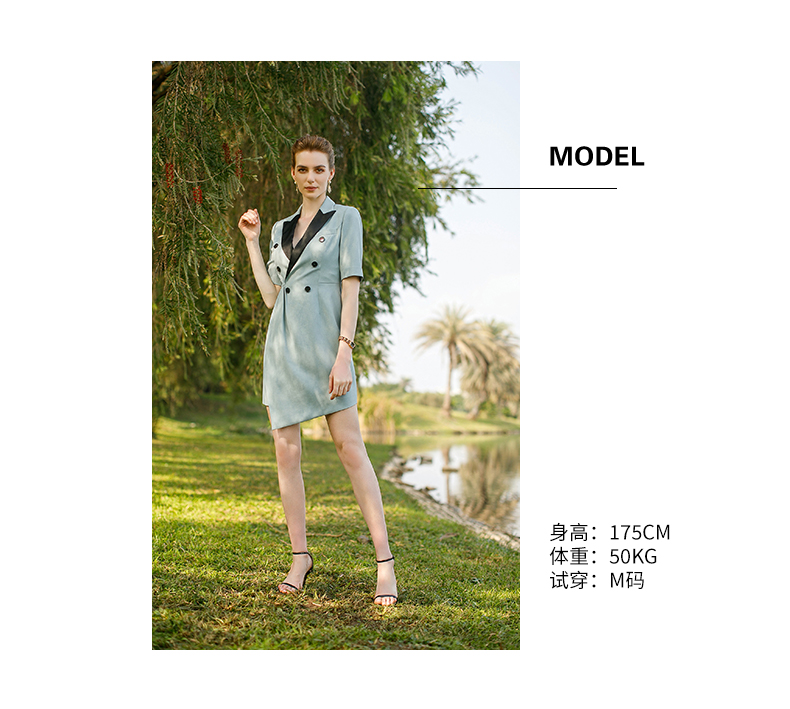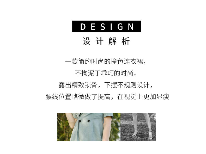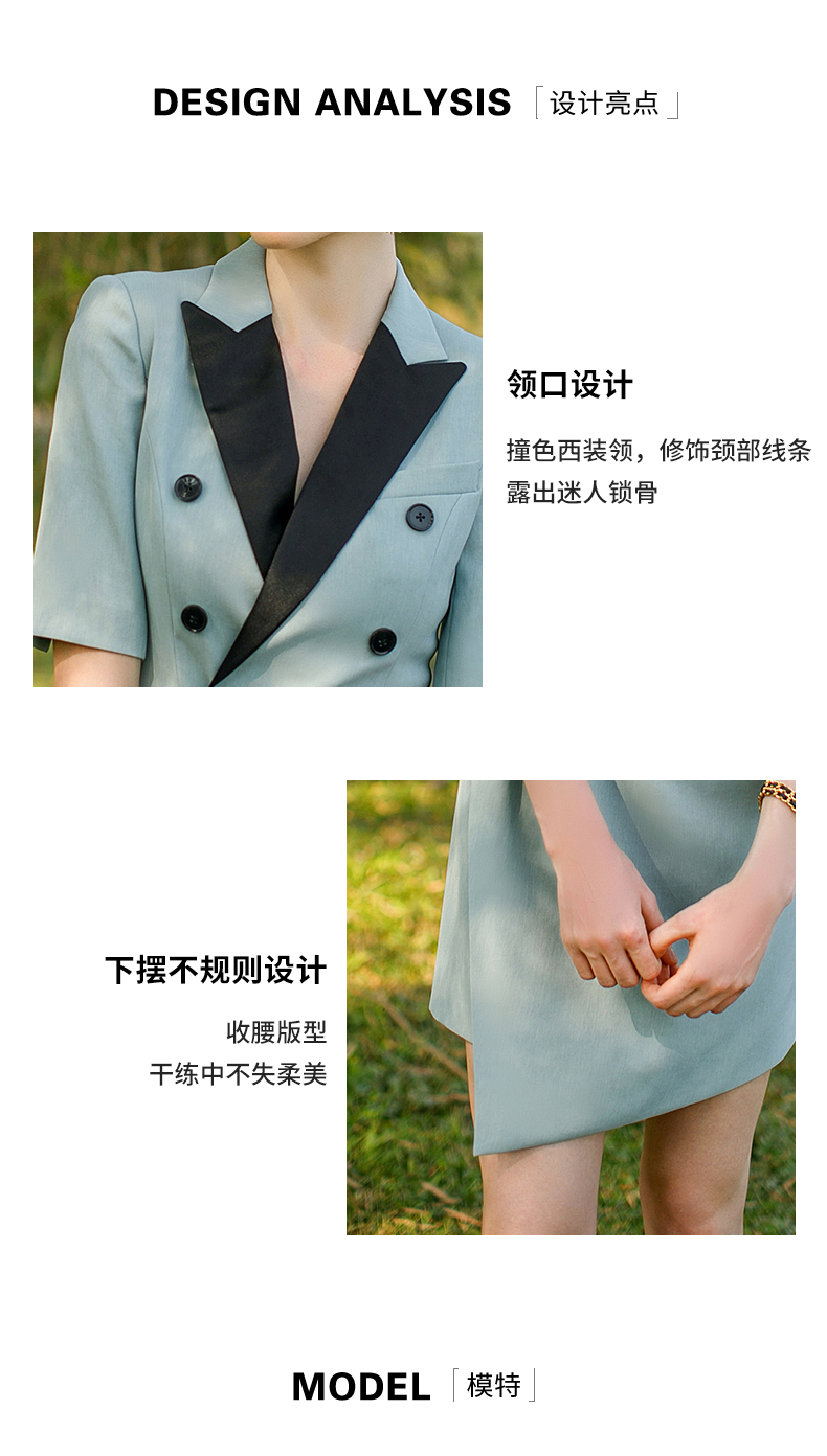 IWY/气质短袖拼接西装连衣裙女时尚气质美容院工作服播音主持艺考正装222065Q1