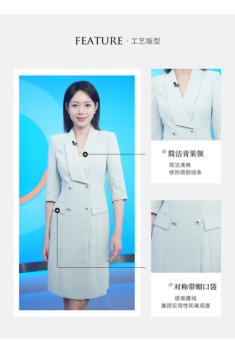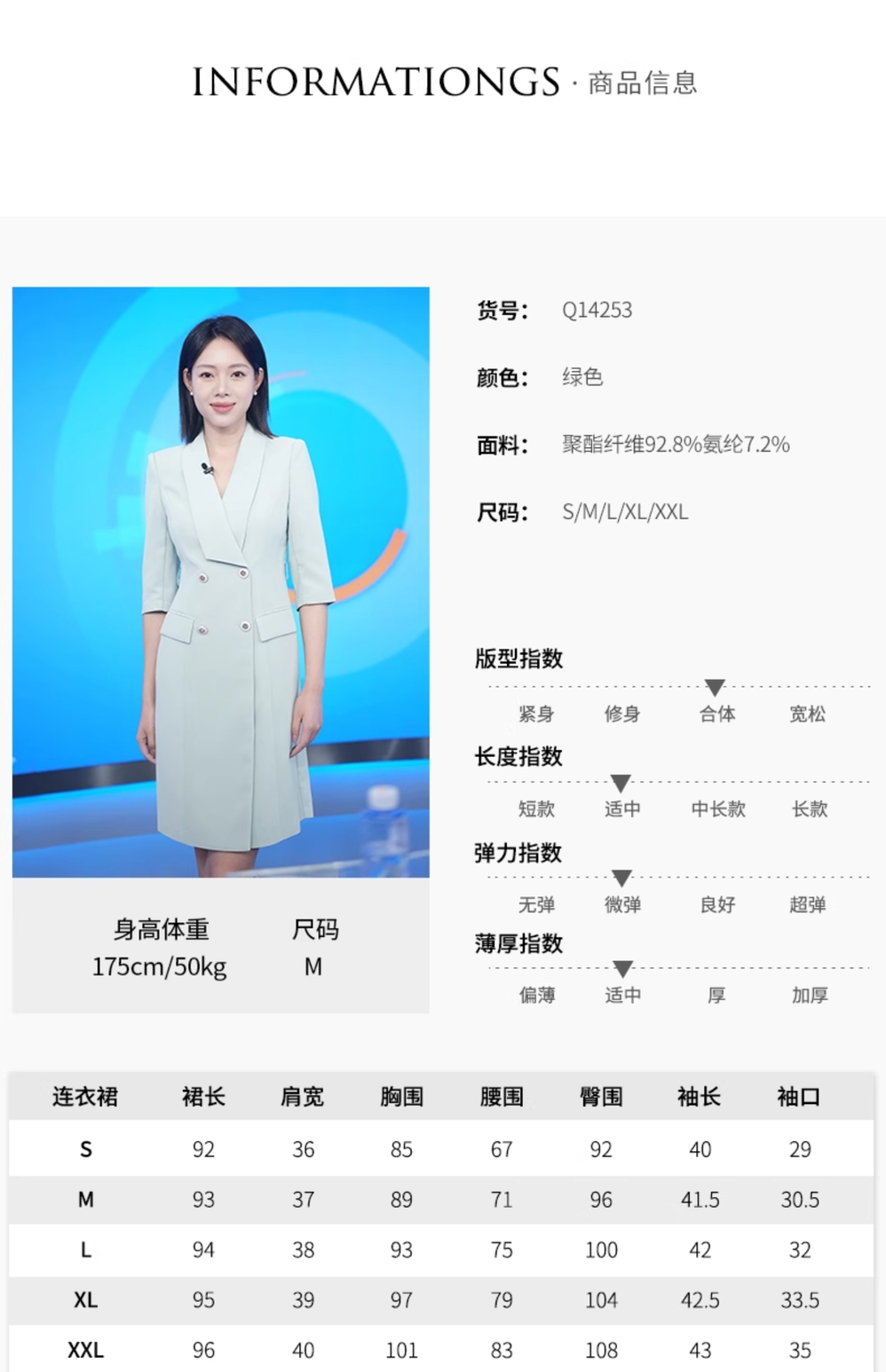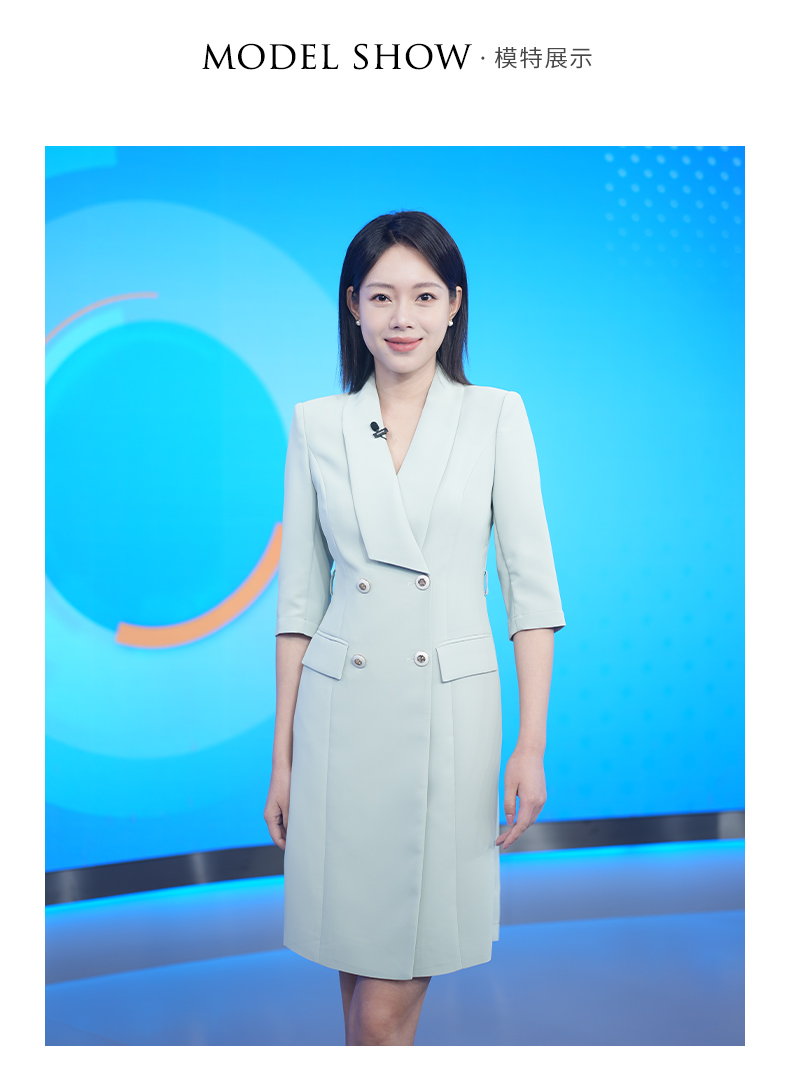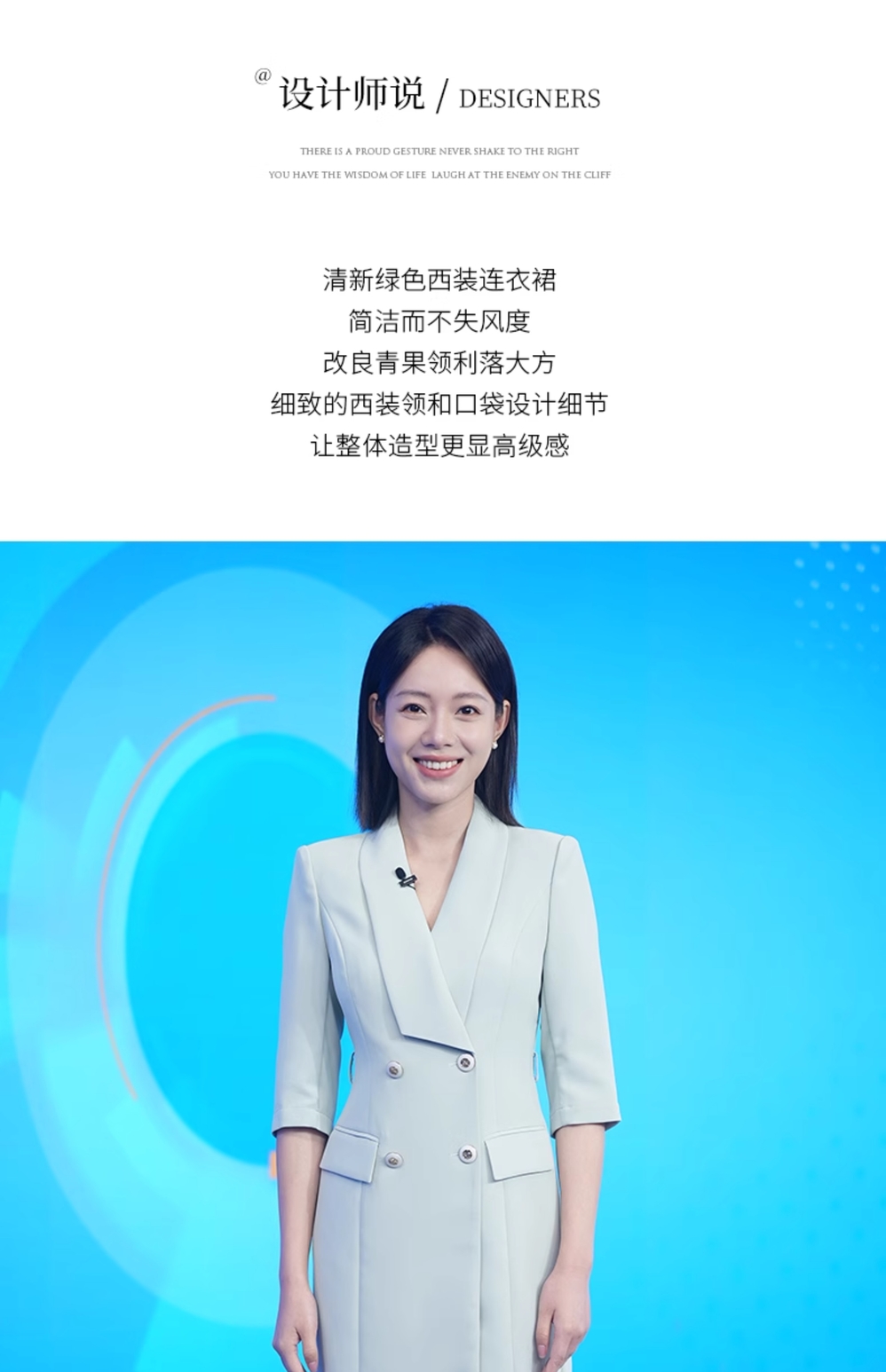 IWY/绿色播音主持人连衣裙七分袖气质通勤教师录课会议演讲比赛裙Q14235