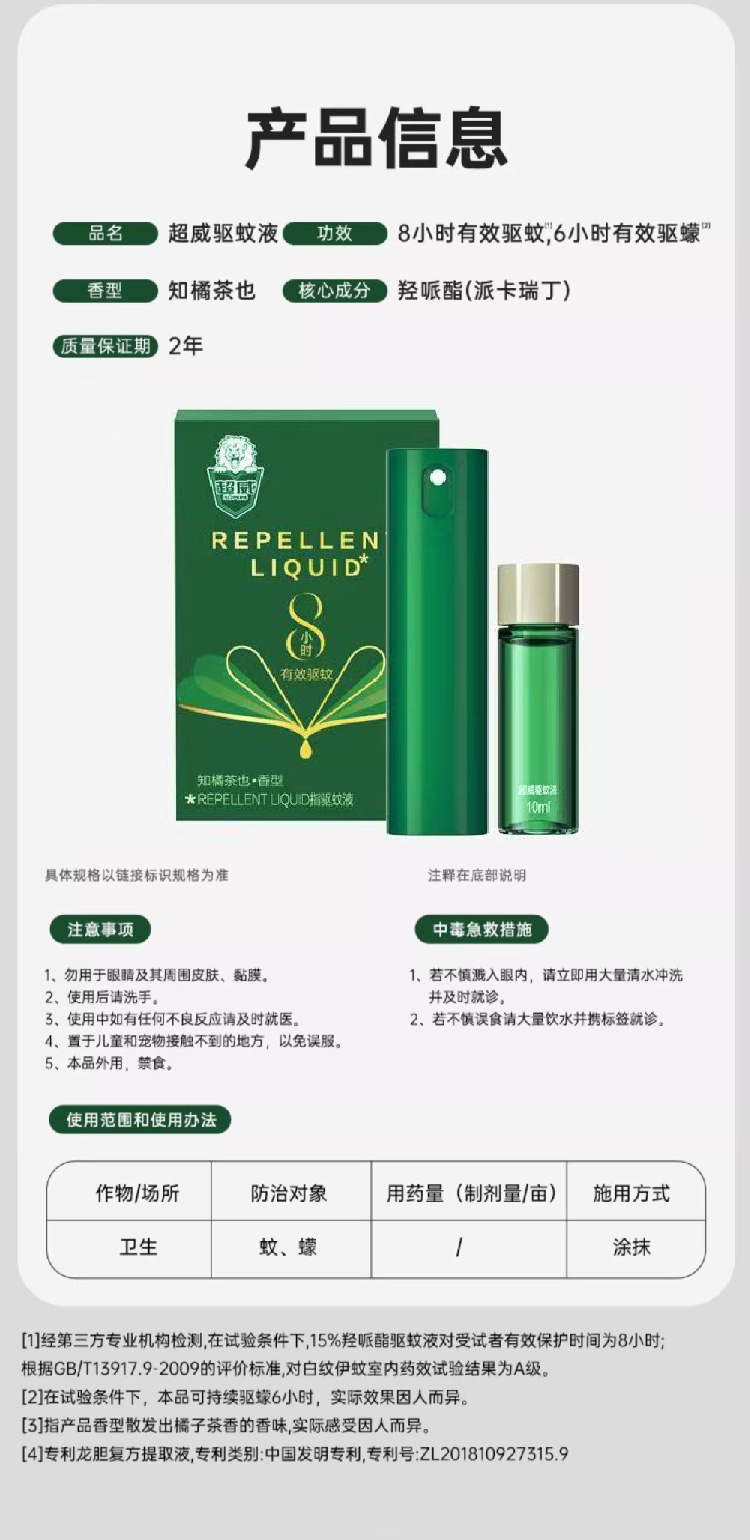 超威驱蚊液防蚊灭蚊花露水蚊虫止痒喷雾剂蚊子水户外露营随身便携
