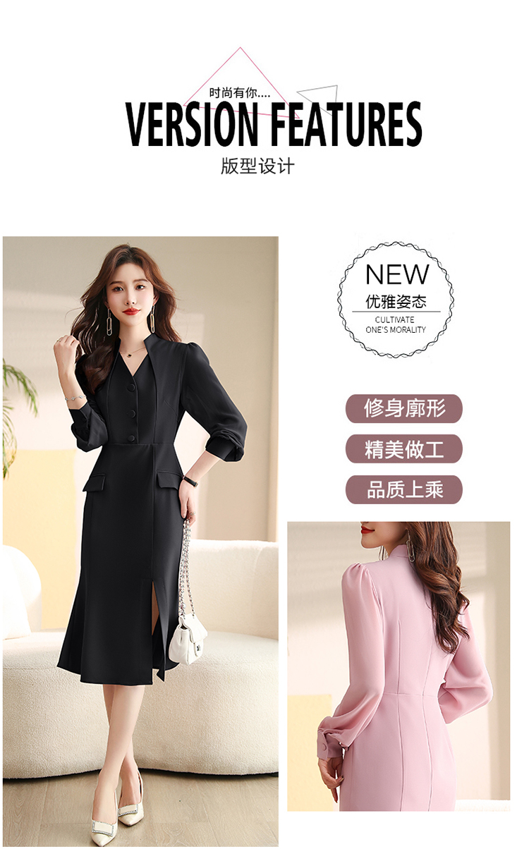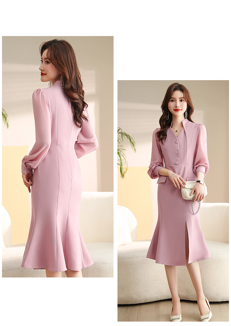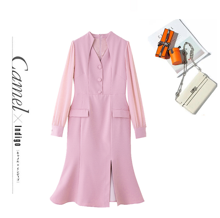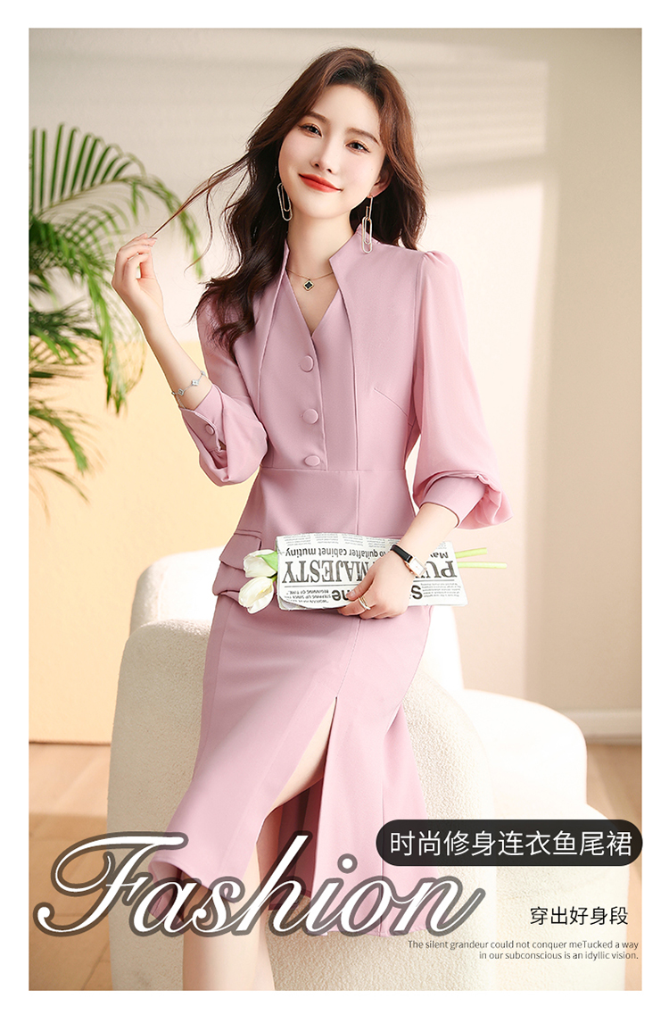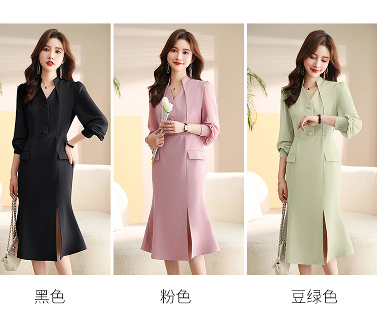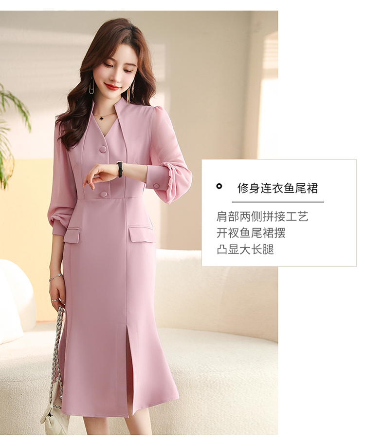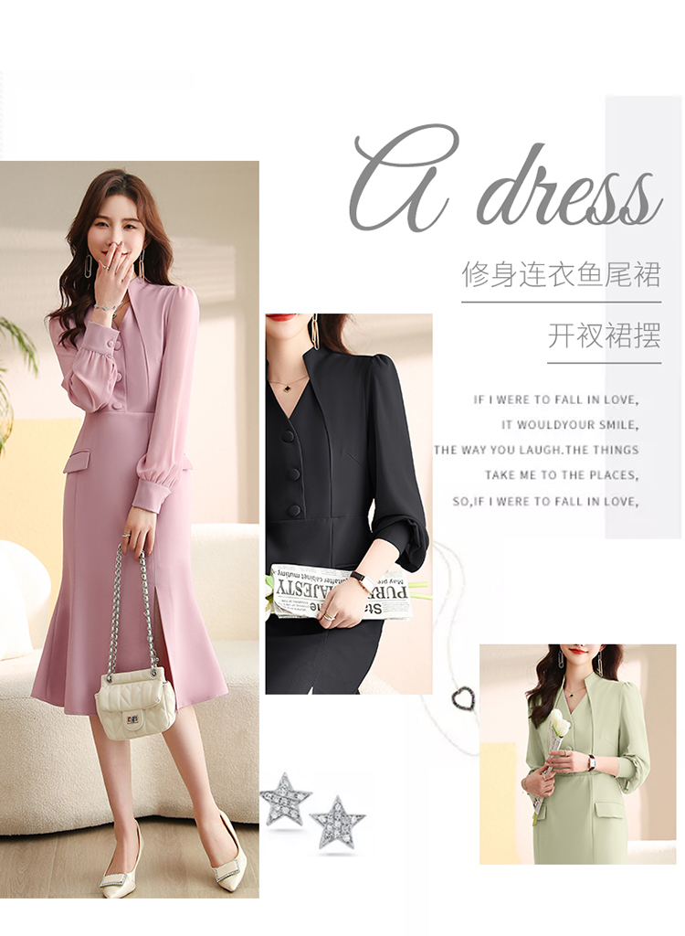春装新款,时尚修身连衣鱼尾裙HR-SNX2680-1