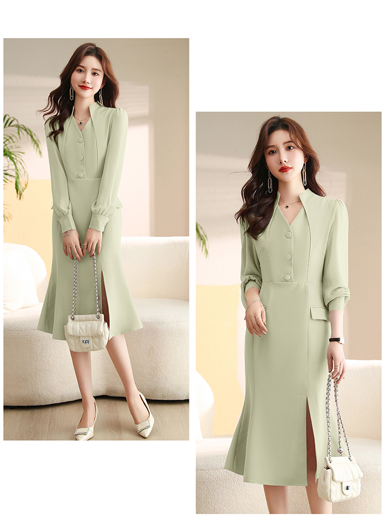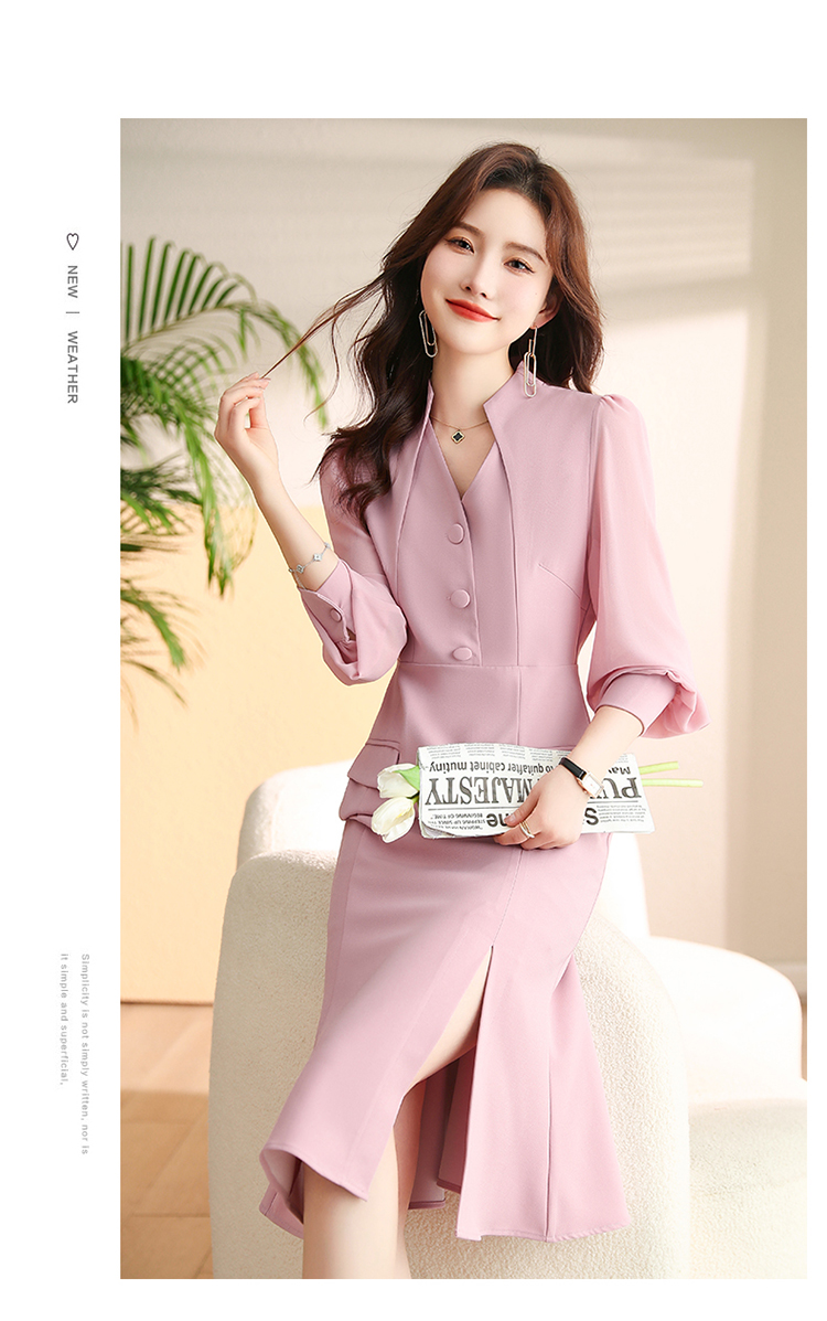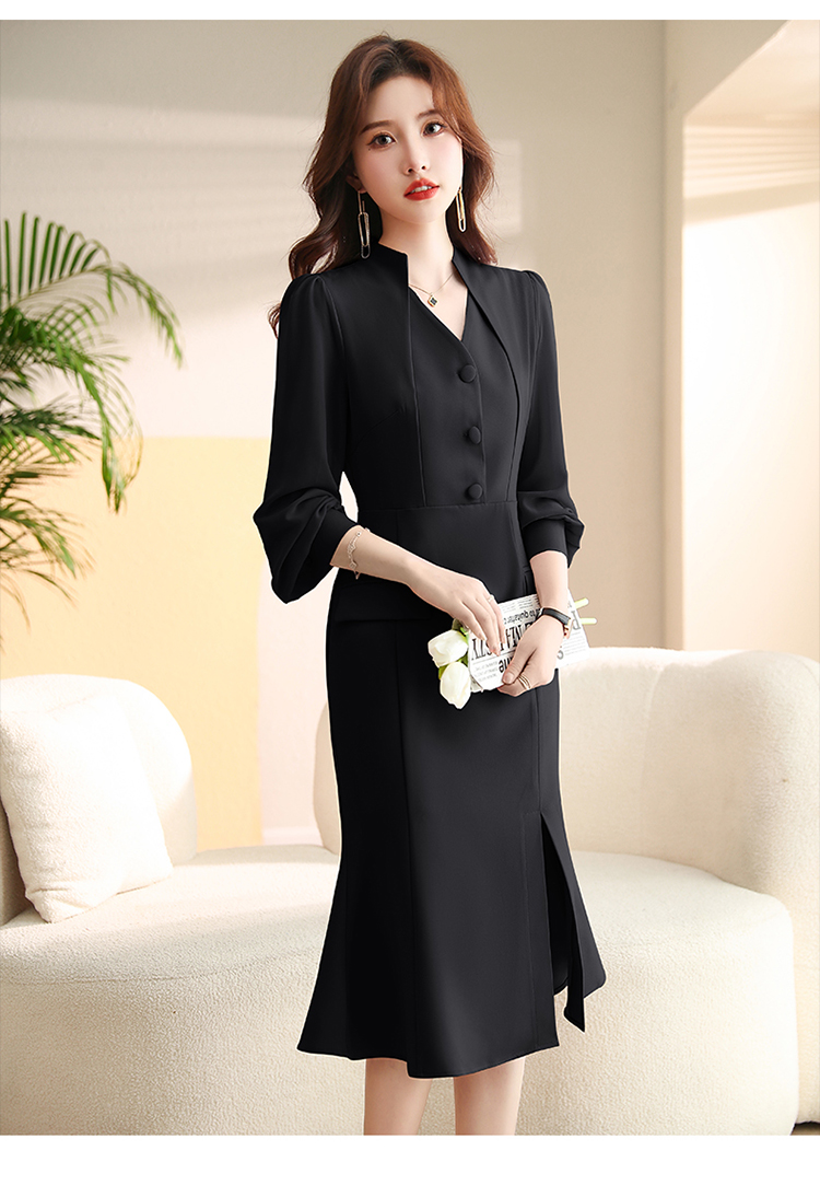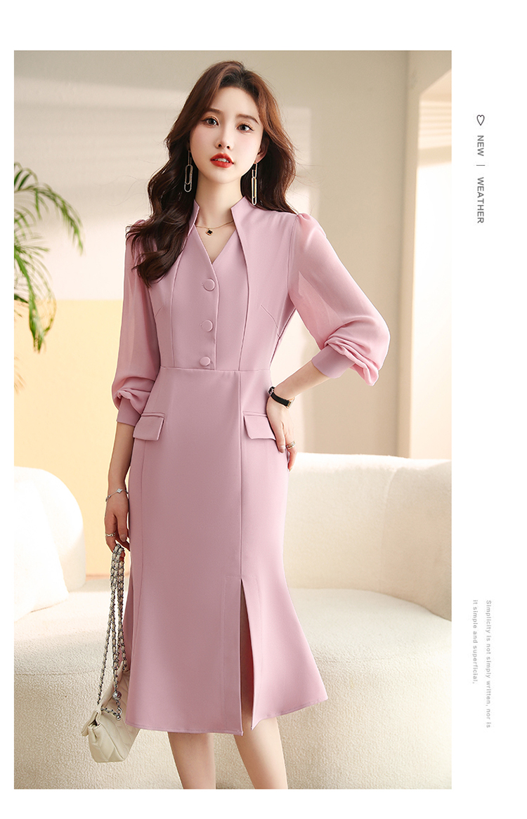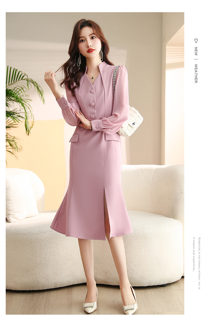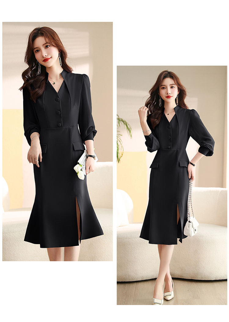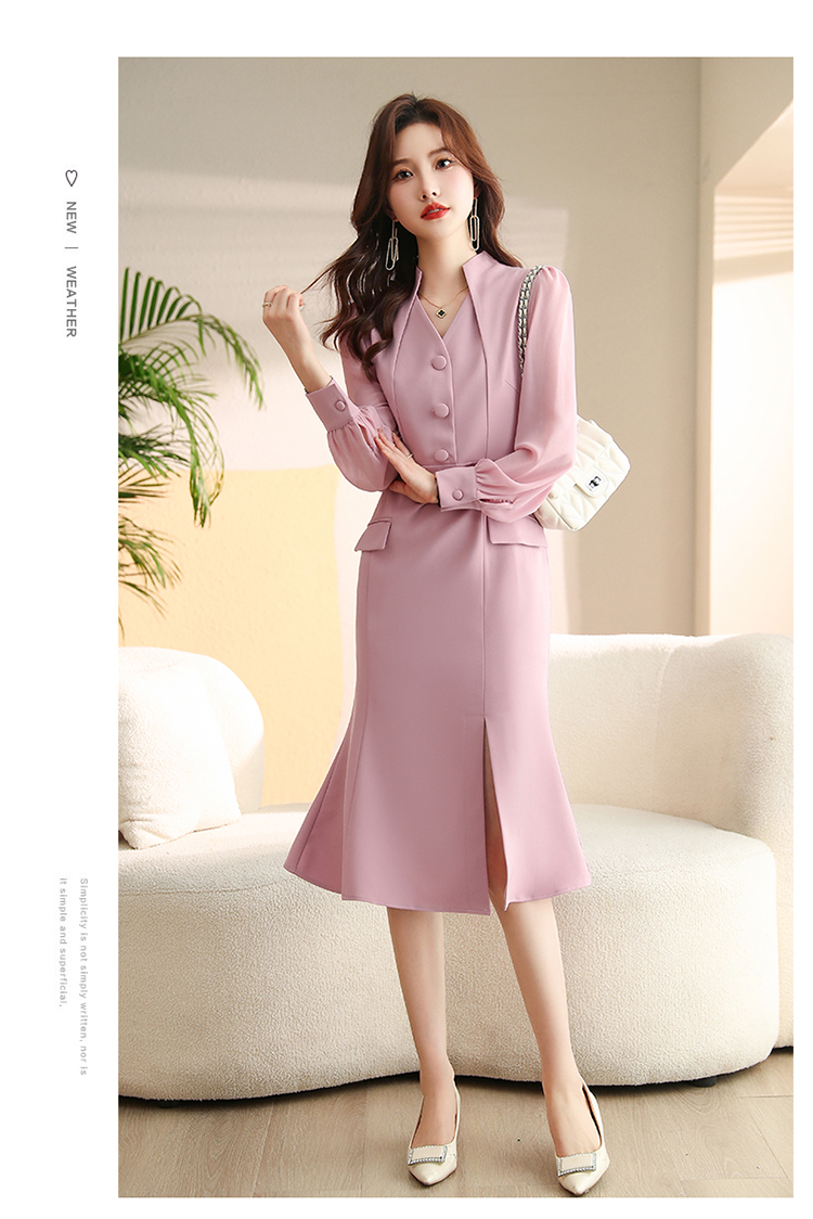 春装新款,时尚修身连衣鱼尾裙HR-SNX2680-1