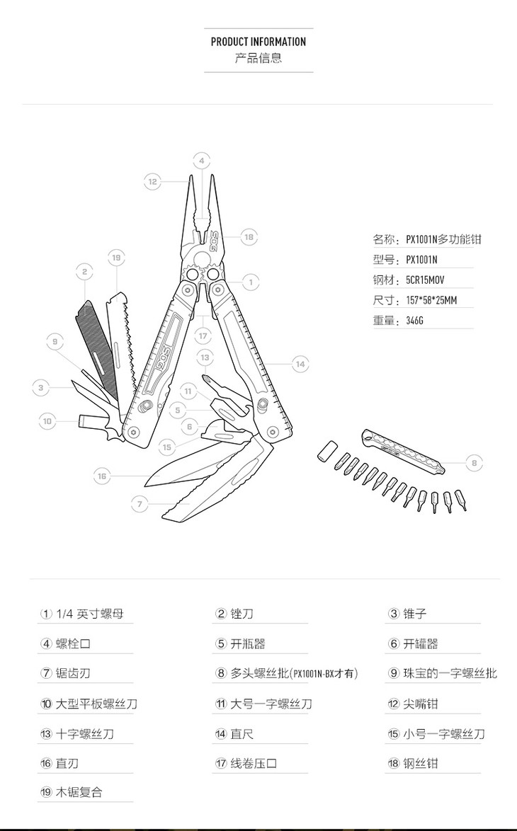 多功能钳(一把钳子、一组批头、一个尼龙套)