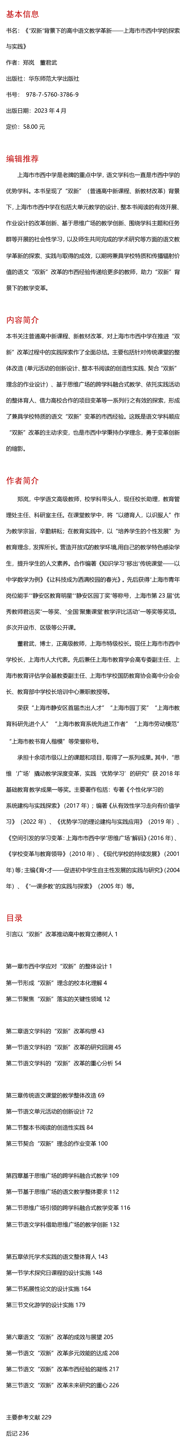 “双新”背景下的高中语文教学革新 上海市市西中学的探索与实践 郑岚 董君武著