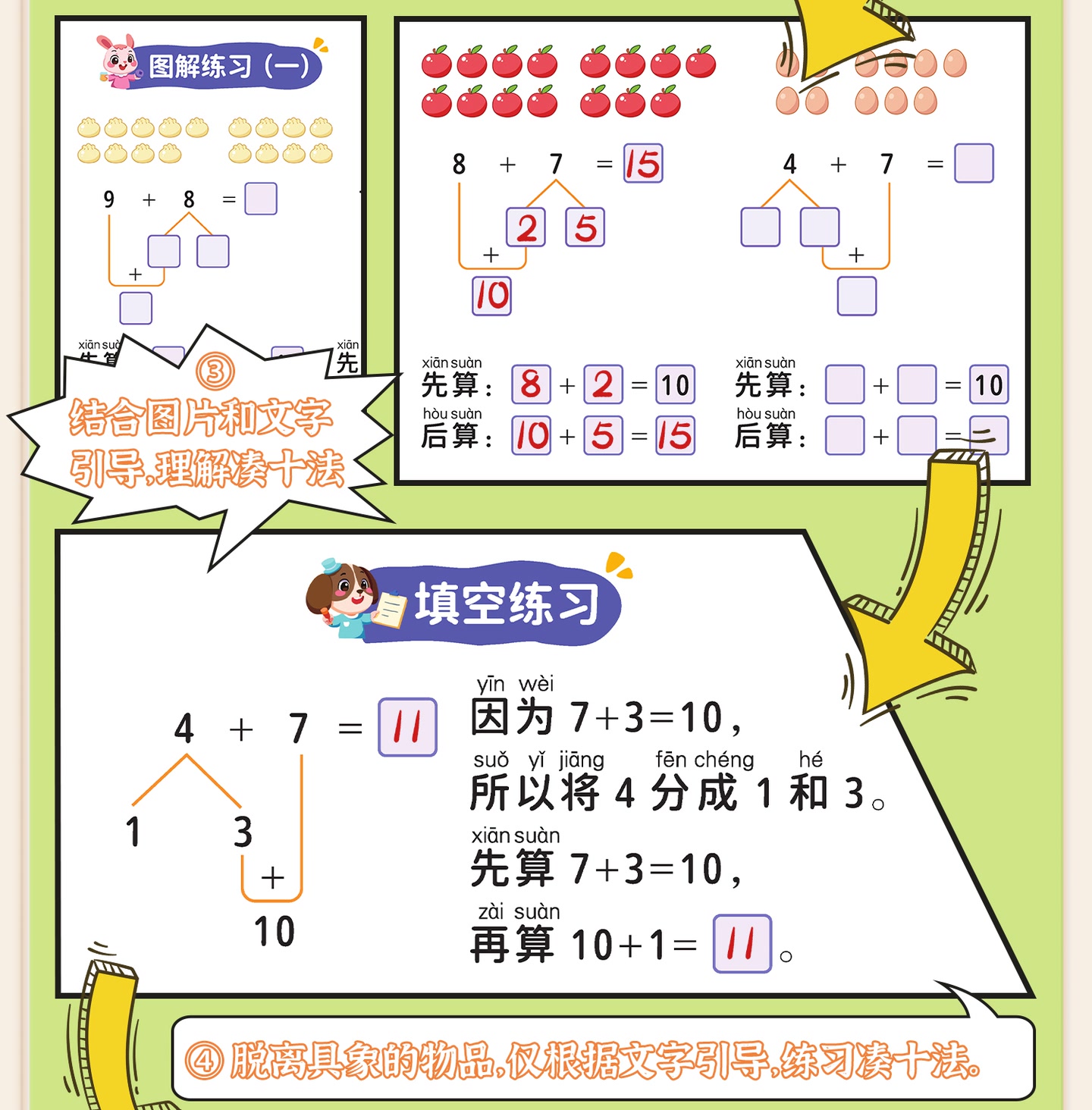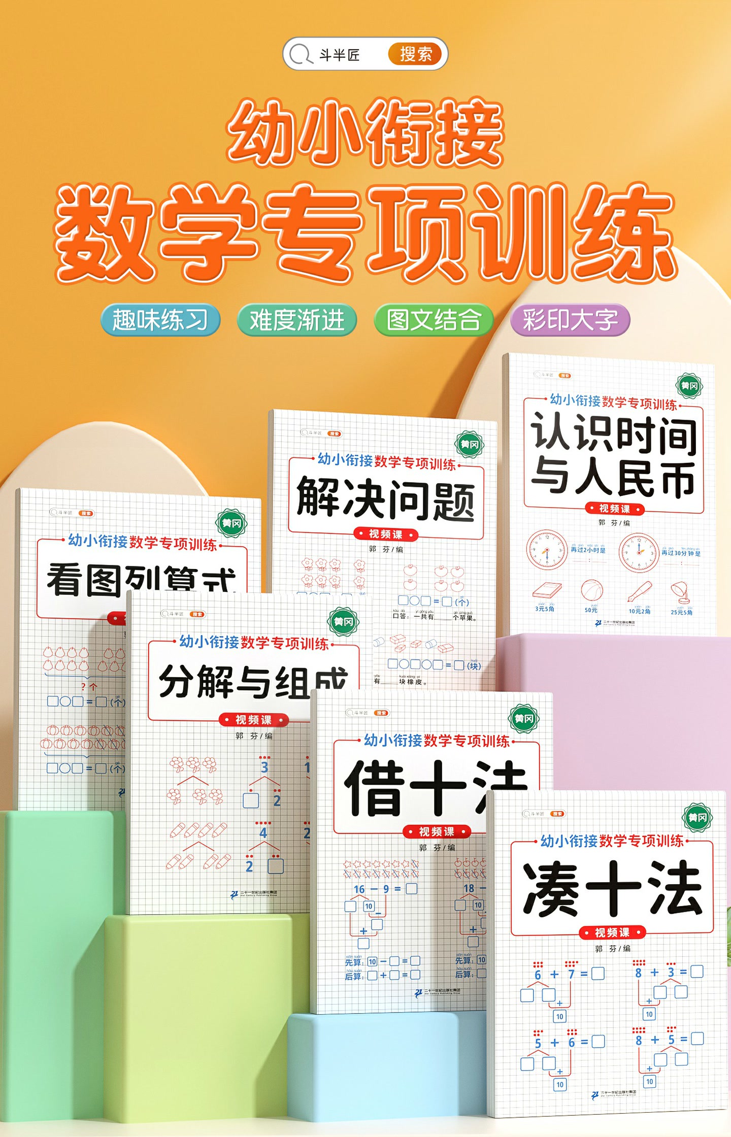 【斗半匠】幼小衔接凑十法借十法分解组成看图列式数学专项