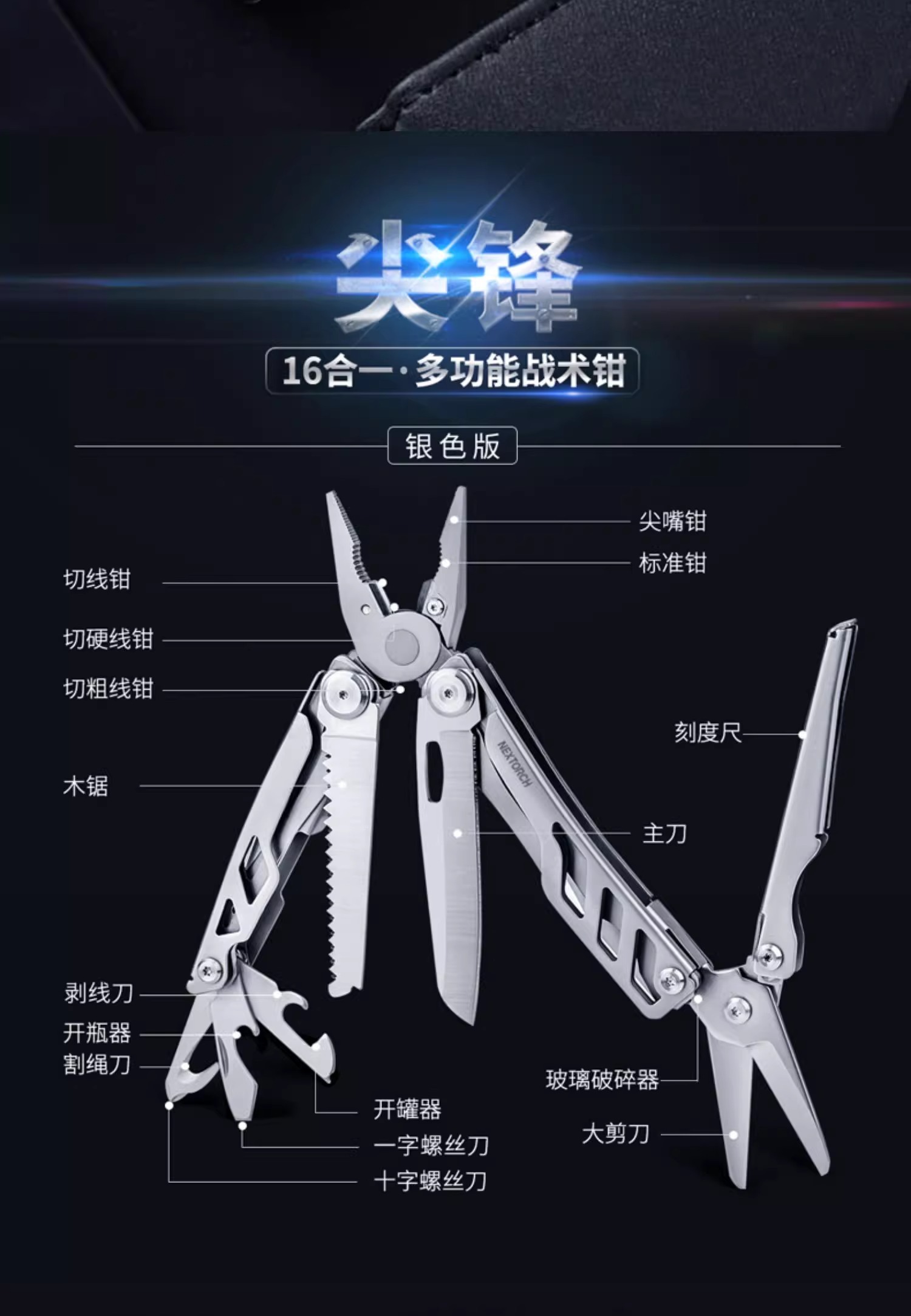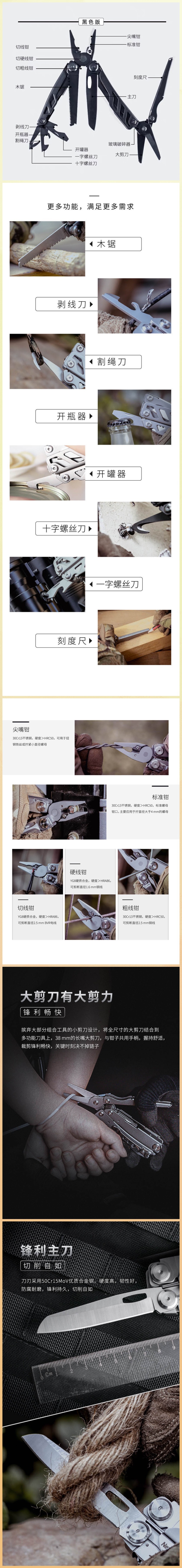 纳丽德尖锋十六合一工具钳多功能组合剪刀家用户外钳子折叠小刀