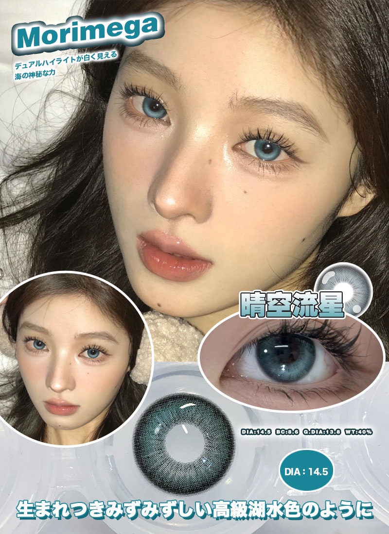 morimega日抛 晴空流星 漂亮的蓝色 14.5mm 日抛无售后!不同度数拍2盒