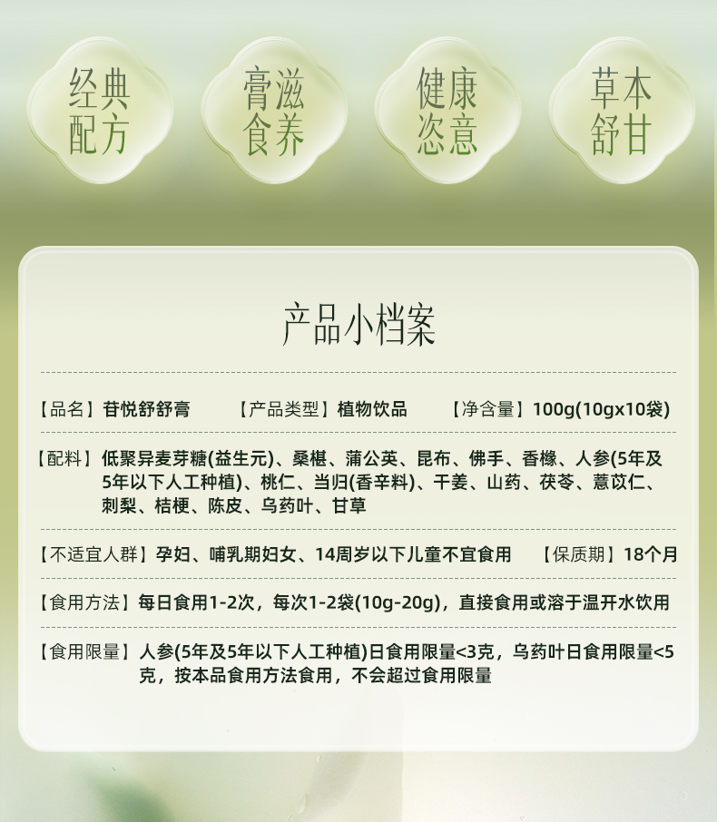 【官方正品】云南白药有这一方苷悦舒舒膏10g*10袋便携装人参当归桑椹陈皮古方养生膏浓缩速溶无渣