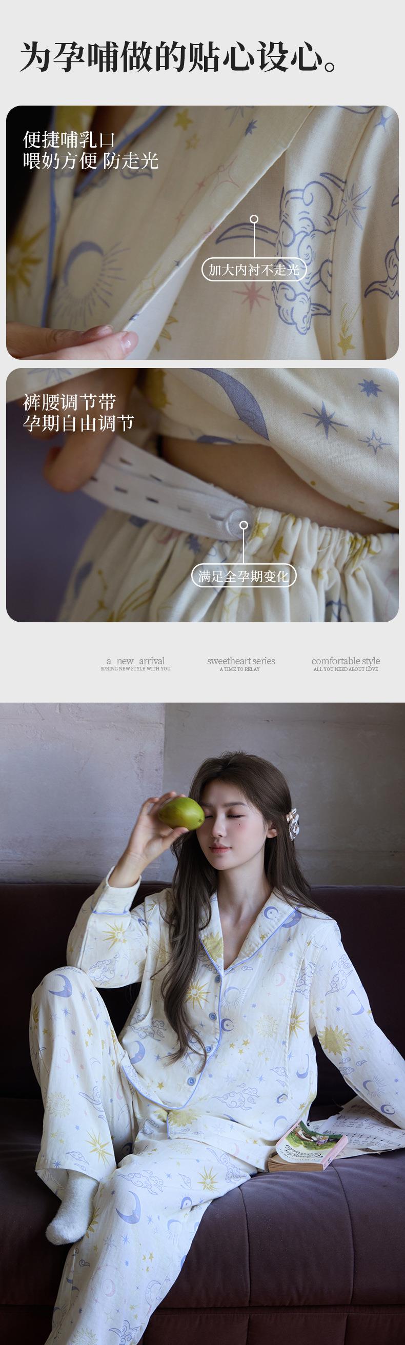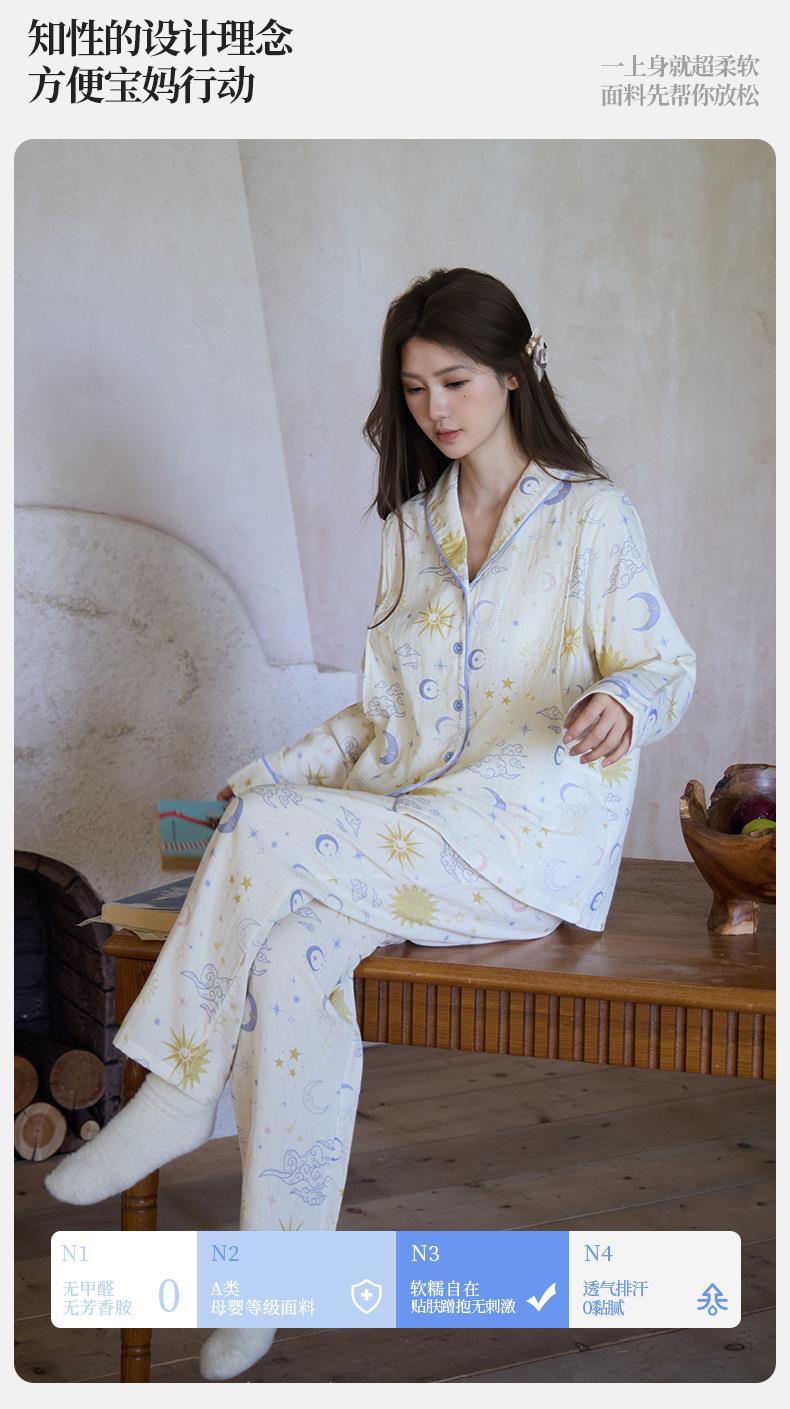 新款纯棉双层纱布月子服春秋季孕期住院产后可调节哺乳家居服套装