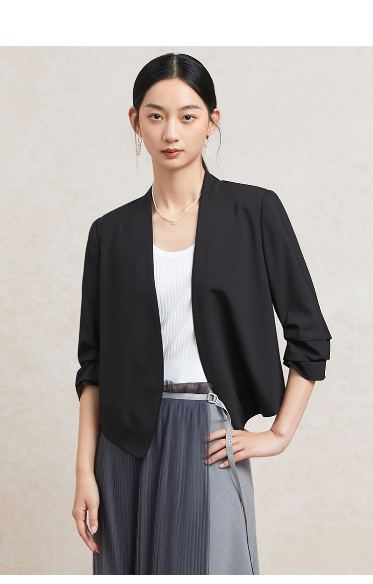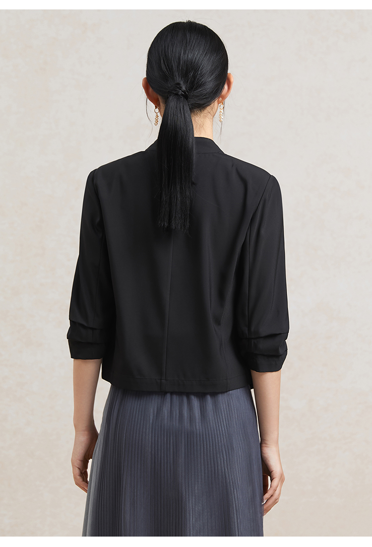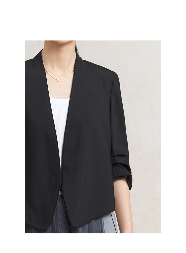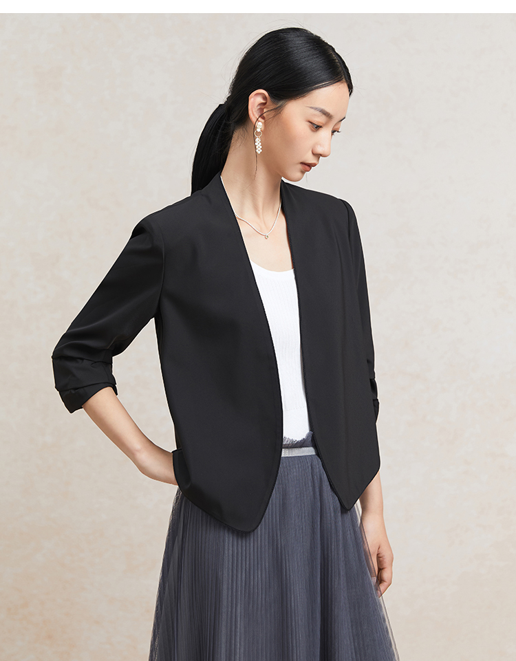 famecoco范可儿无领通勤西装女士夏季极简薄款西服外套FAC3AW005