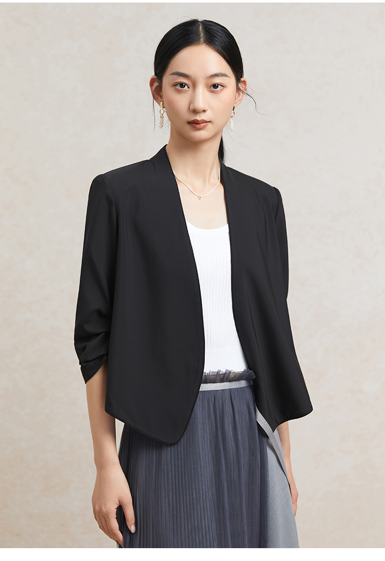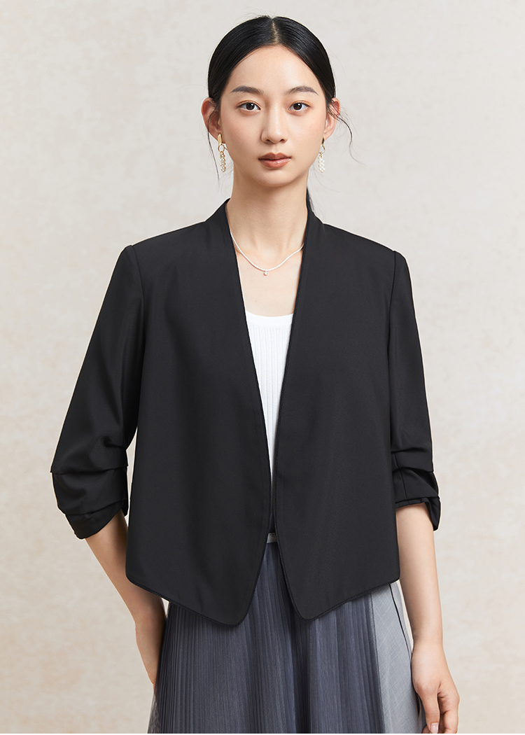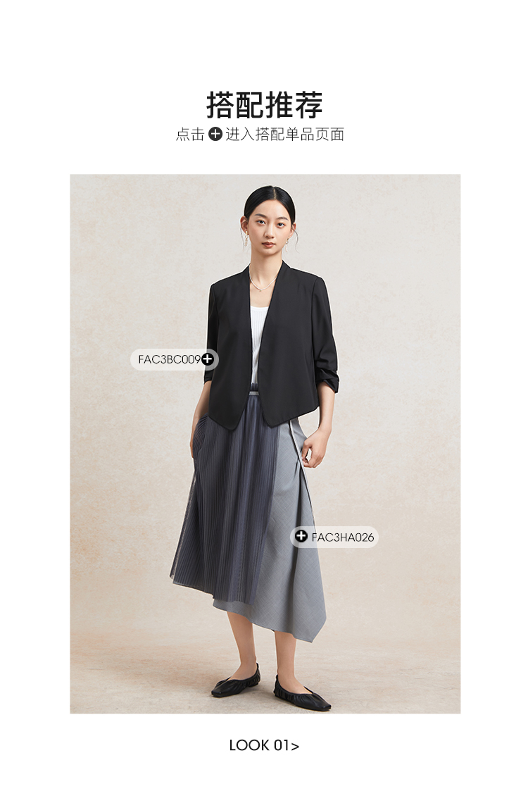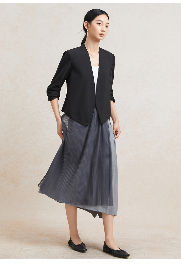famecoco范可儿无领通勤西装女士夏季极简薄款西服外套FAC3AW005