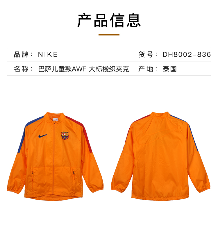 NIKE/耐克 FCB Y NK DF RPL ACDMY AWF JKT 巴萨儿童款AWF 大标梭织夹克DH8002836