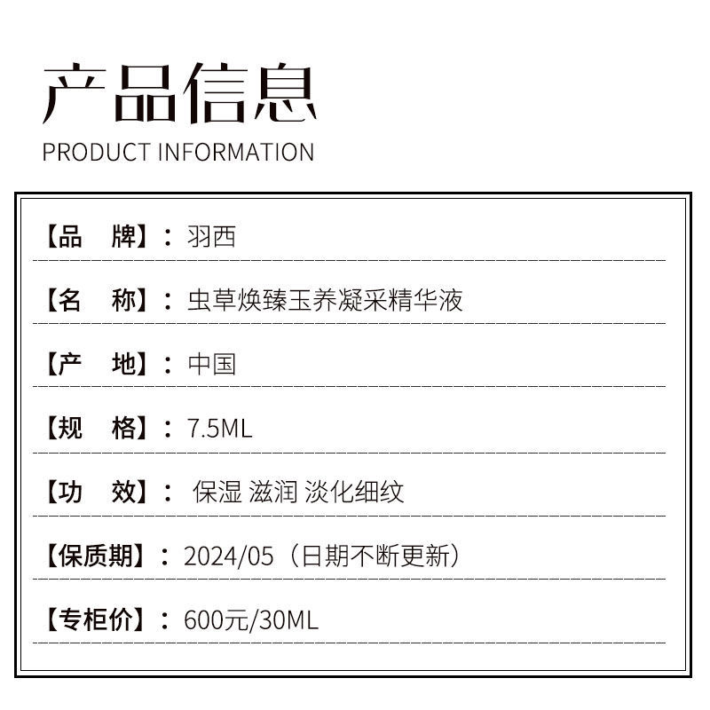 【爆款超低价预售 急单慎拍】羽西虫草焕臻玉养凝采精华液7.5ml 玻色因鎏金瓶小样 到23年