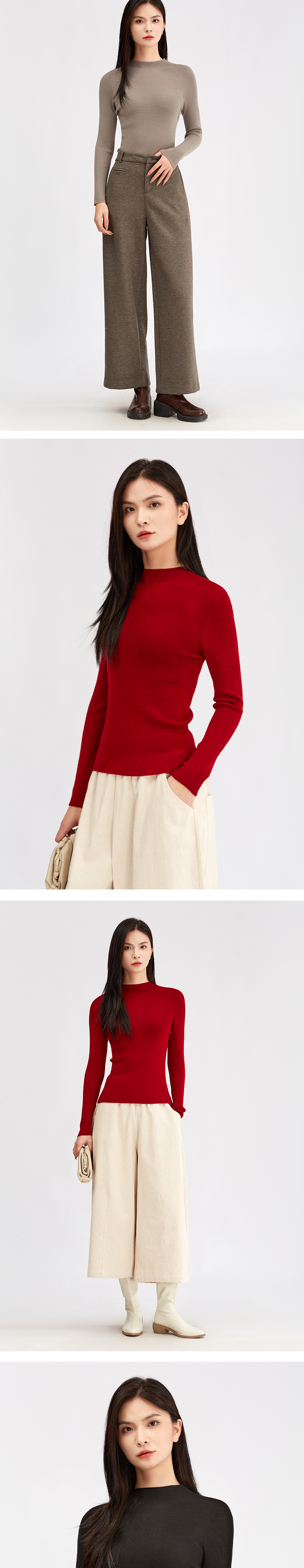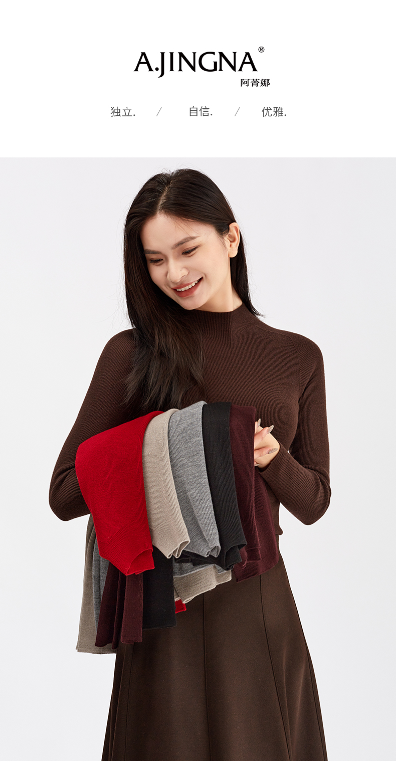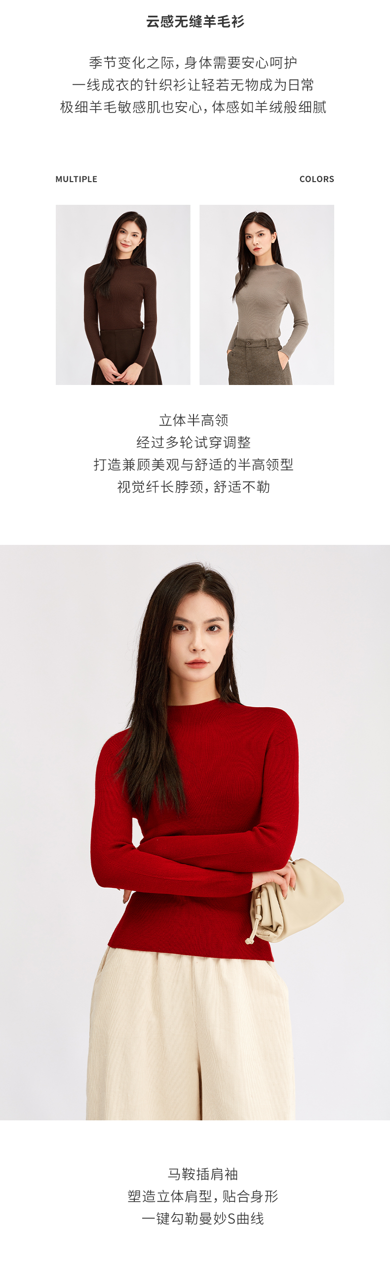【云感无缝】阿菁娜冬季新款云感无缝羊毛衫马鞍袖塑形S曲线立体半高领F30D301001
