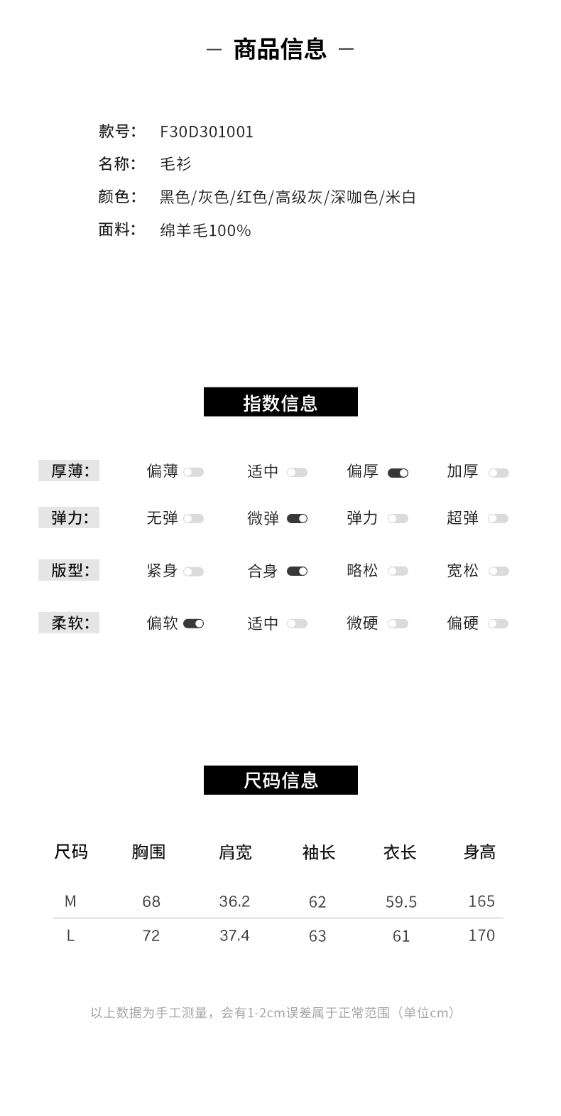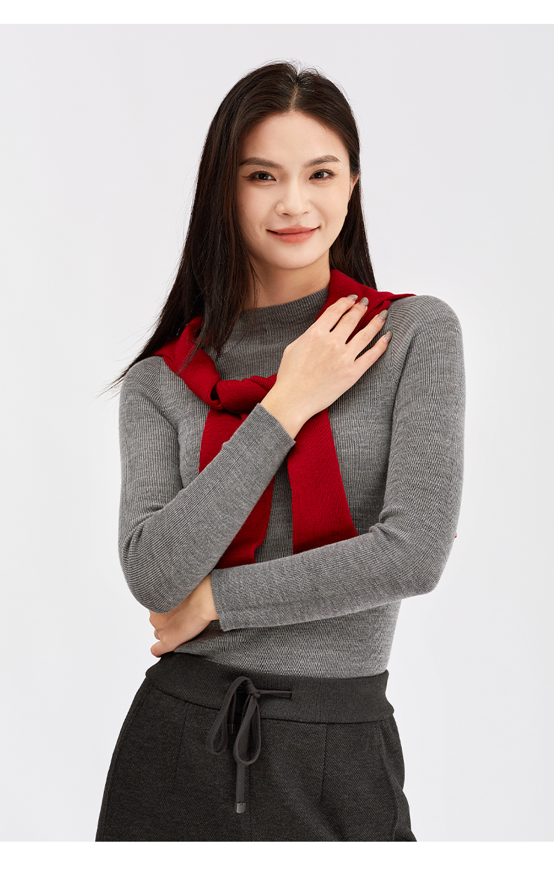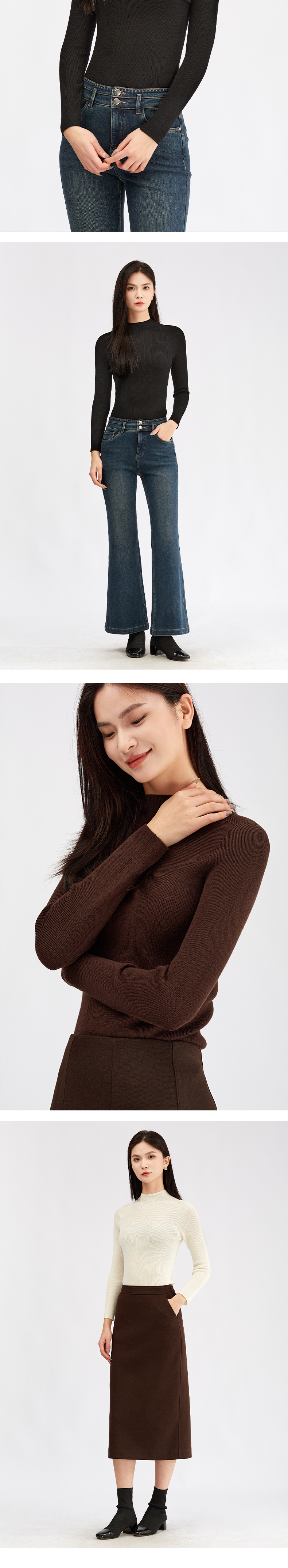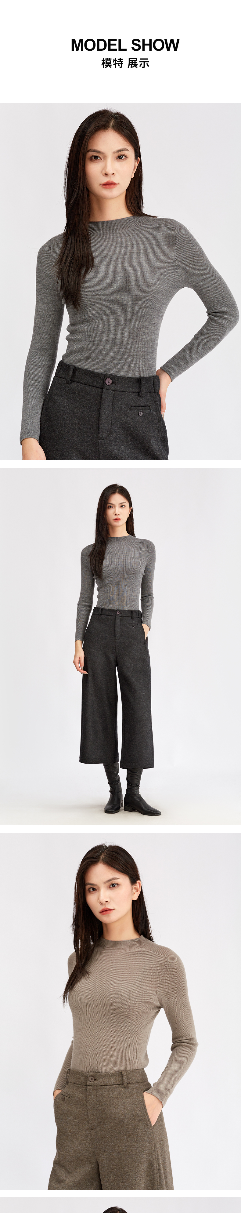 【云感无缝】阿菁娜冬季新款云感无缝羊毛衫马鞍袖塑形S曲线立体半高领F30D301001