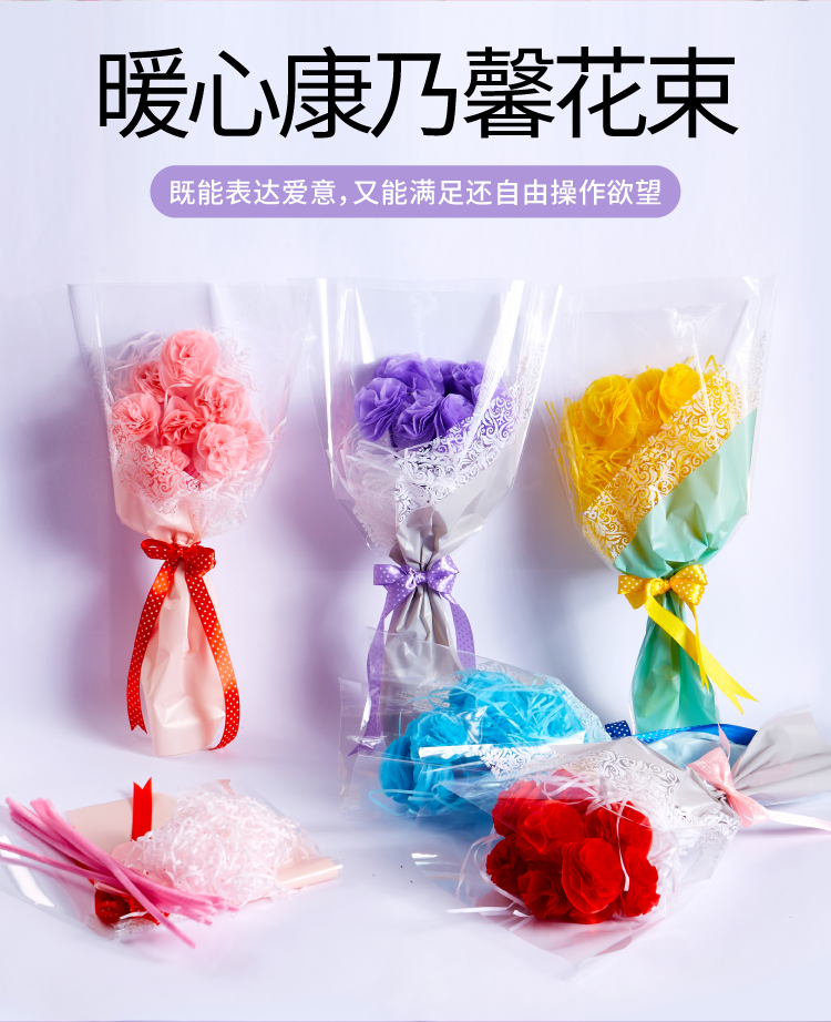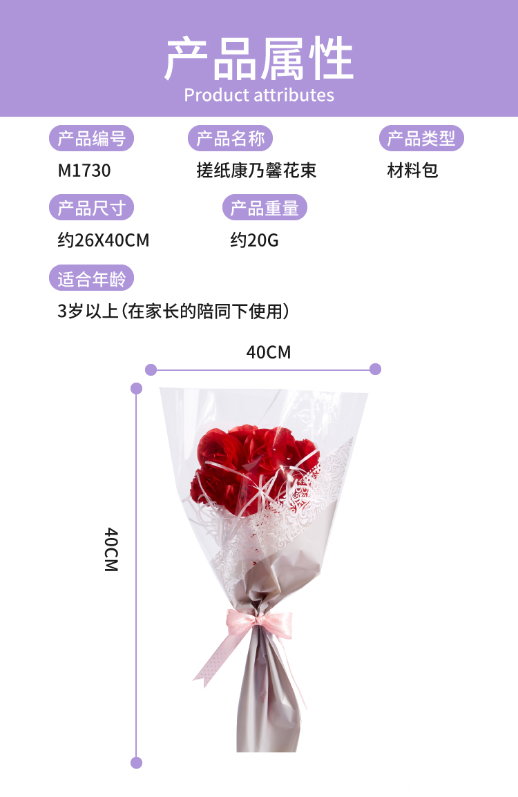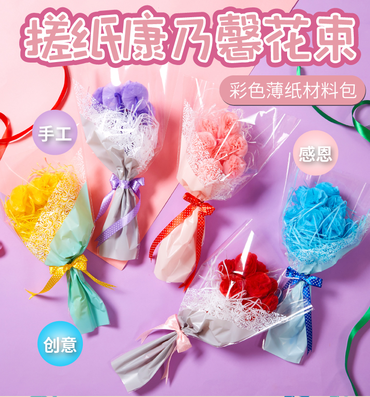 38女神礼物手工diy搓纸康乃馨花束灯光效果幼儿园制作材料包