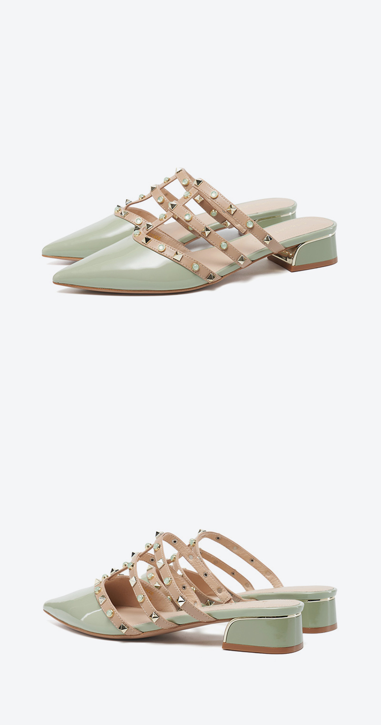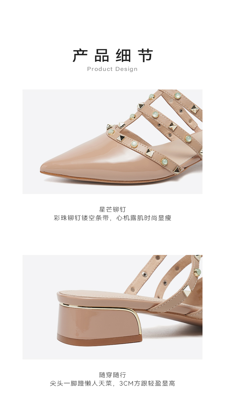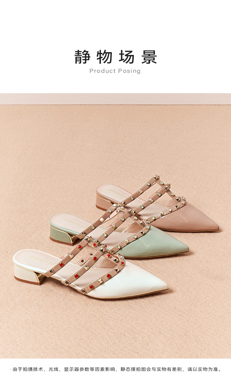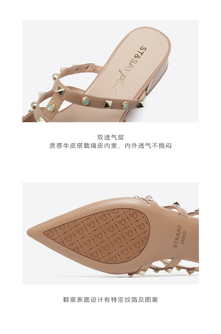 【铆钉系列】星期六26春新款时尚尖头百搭粗跟穆勒拖SSE1114006