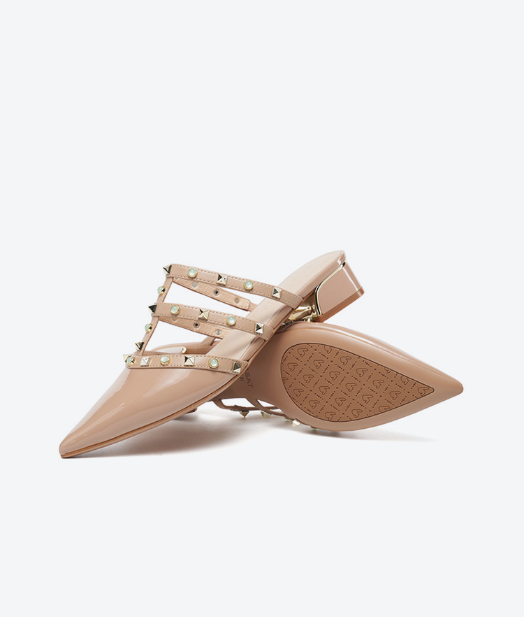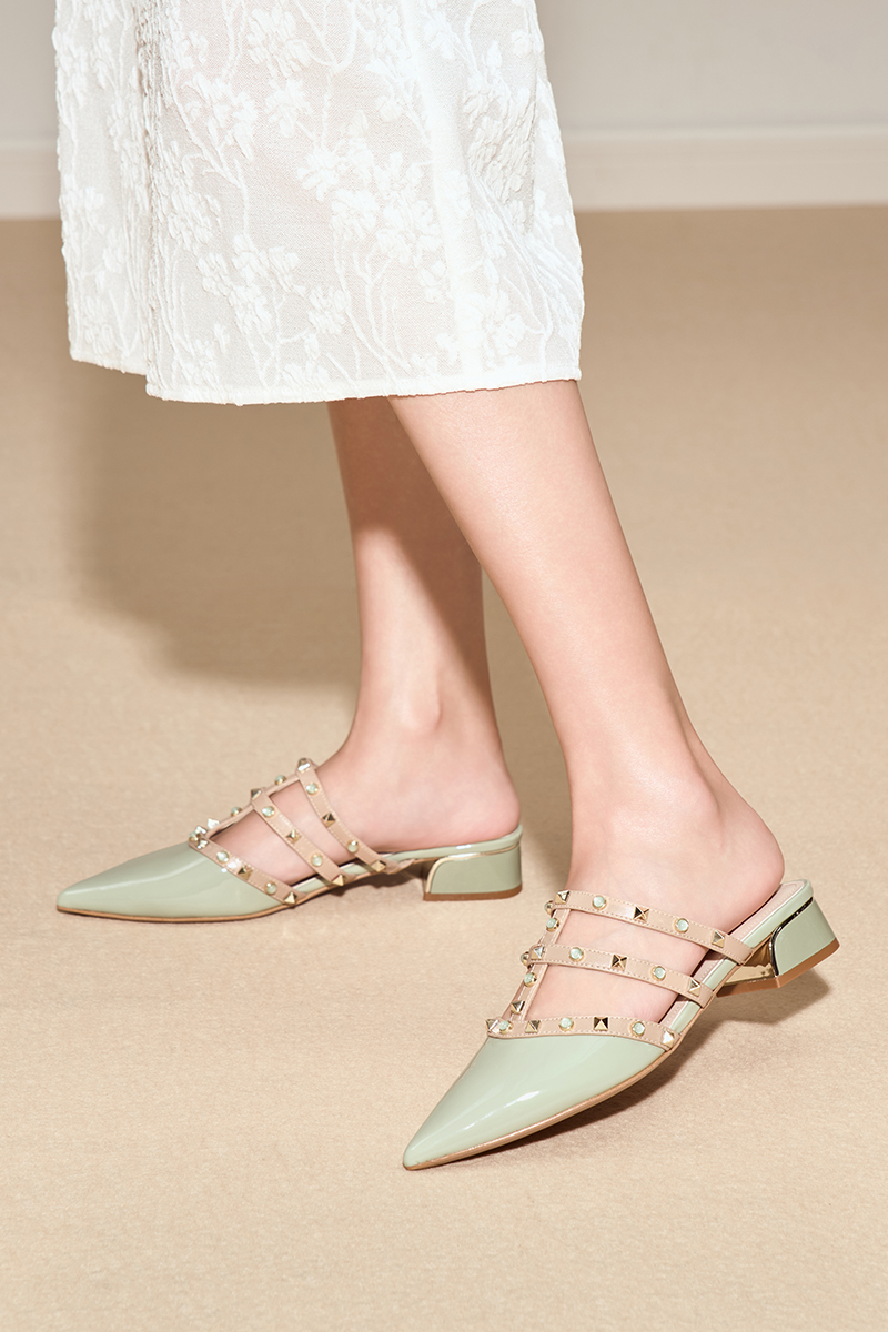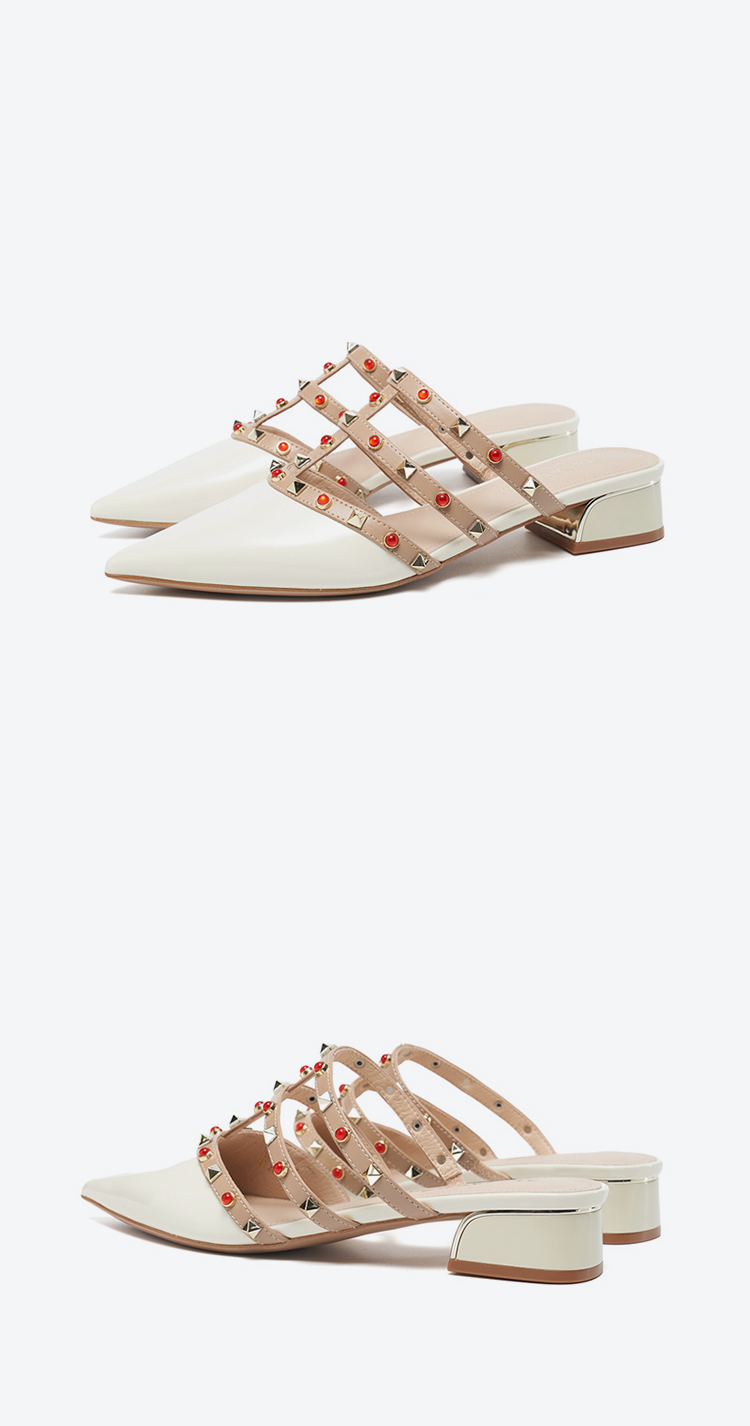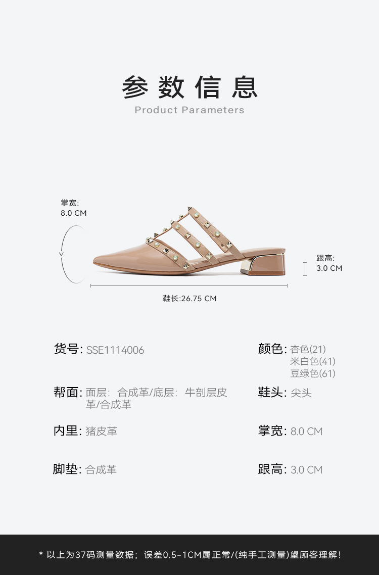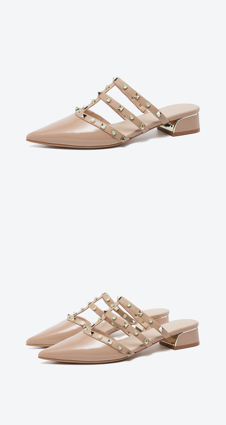 【铆钉系列】星期六26春新款时尚尖头百搭粗跟穆勒拖SSE1114006