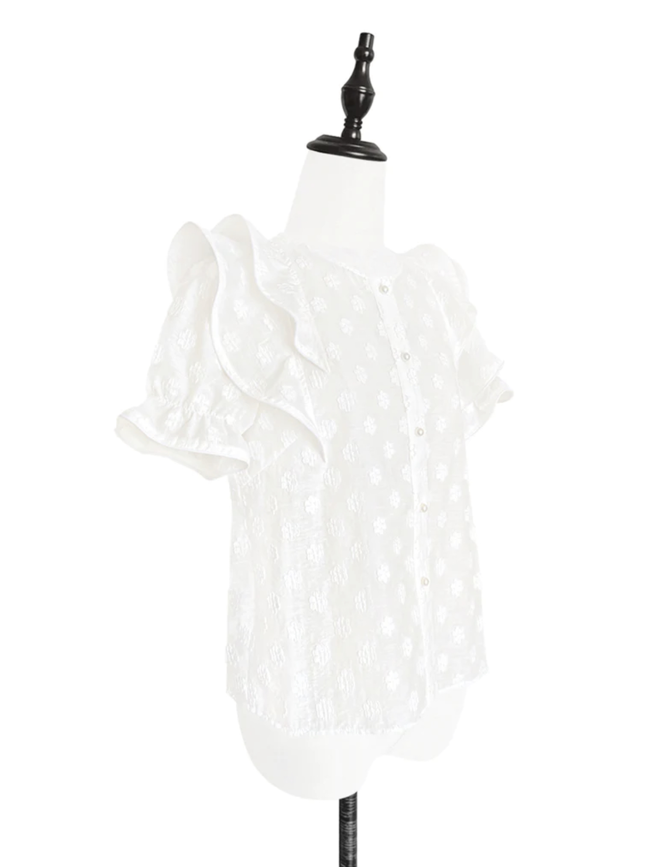 TYNVIE 花边肩饰短袖衬衫 - 白色