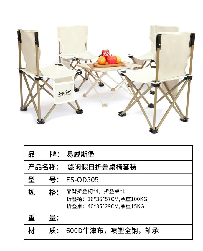 易威斯堡(EasySport)悠闲假日折叠桌椅套装 ES-OD505 白色