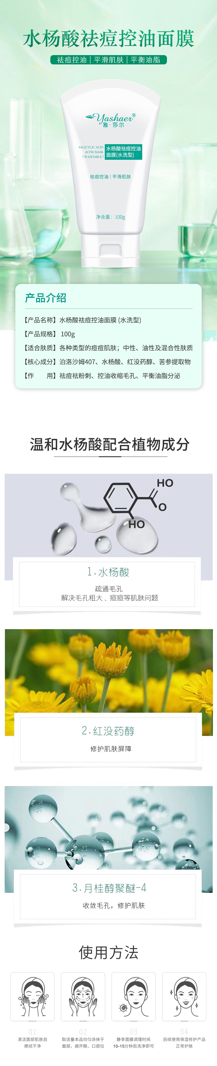 雅莎尔水杨酸祛痘控油面膜(水洗型)祛痘控油收缩毛孔