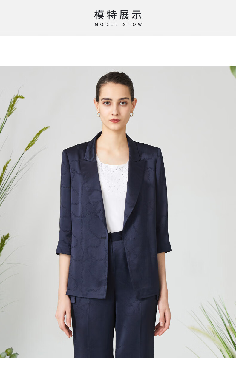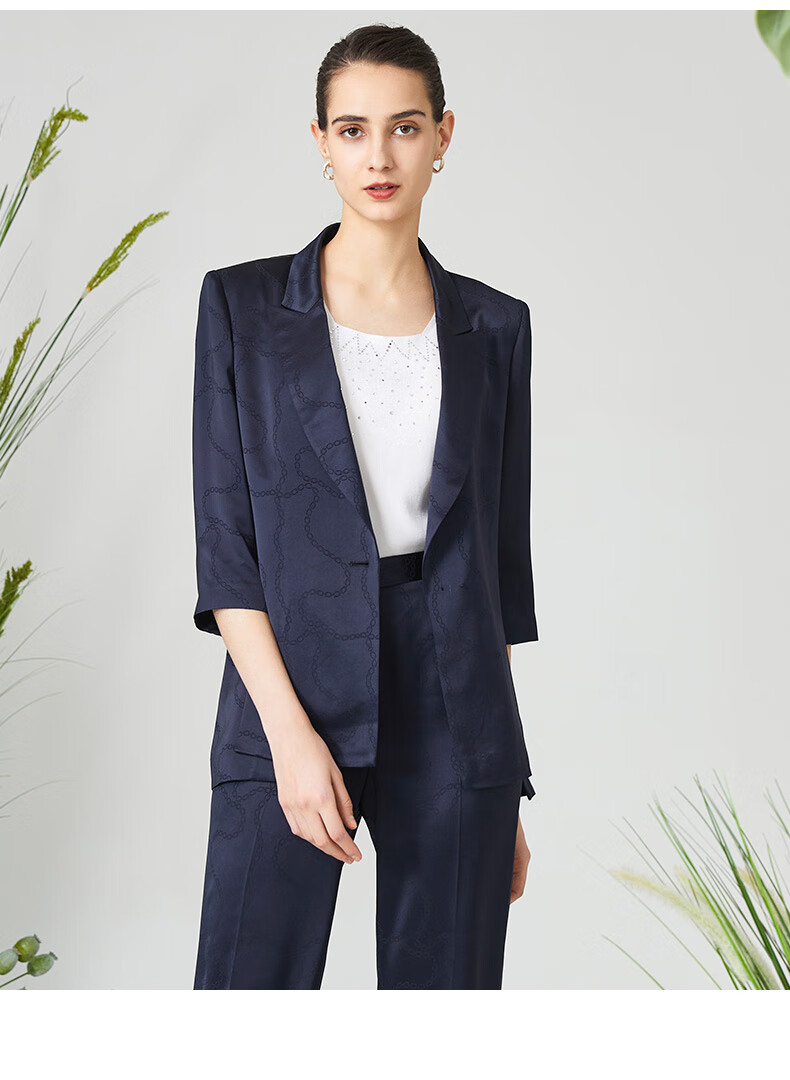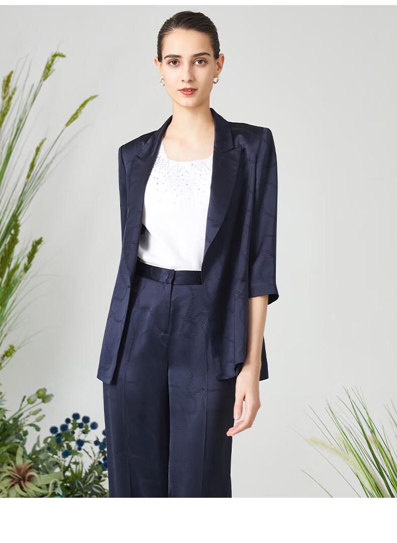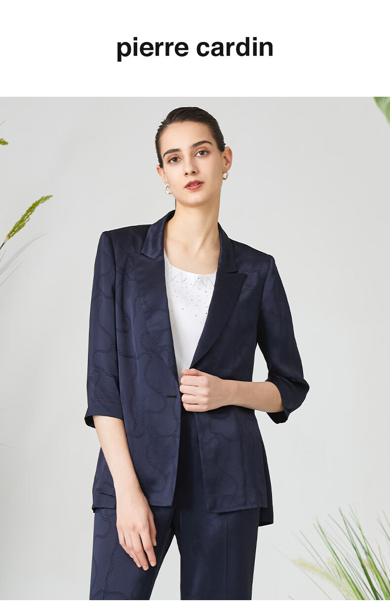 皮尔卡丹女装西装时尚暗纹印花通勤干练西服外套P3125U3084N0