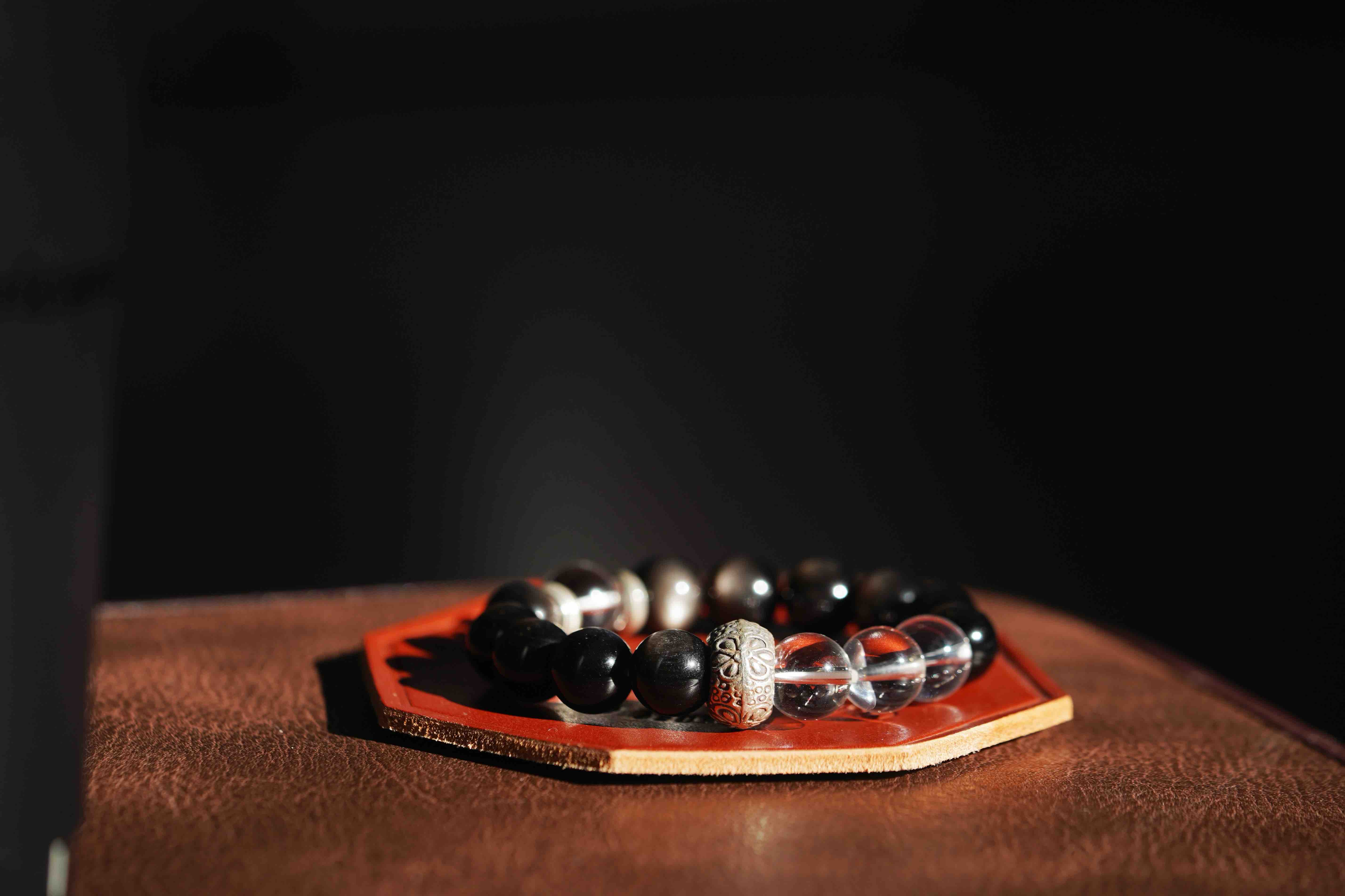 黑曜石负责吸收负能量,白水晶负责净化内心和气场,给你一个能量满满的正磁场