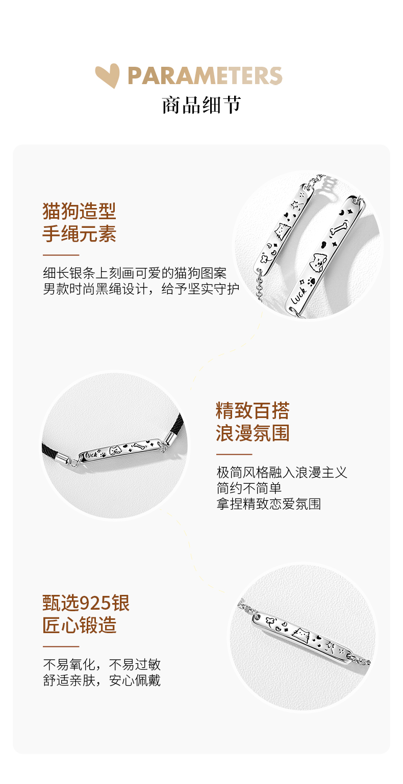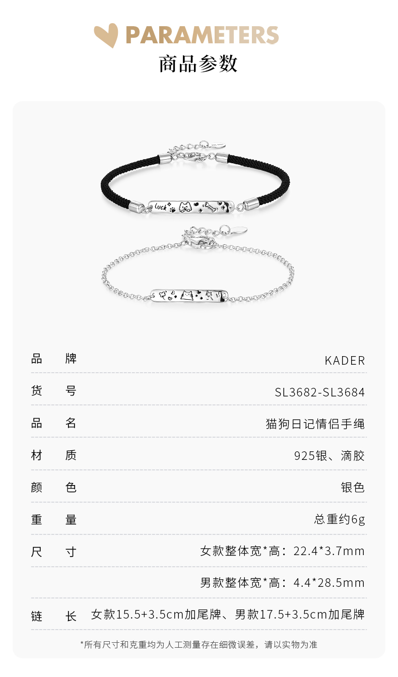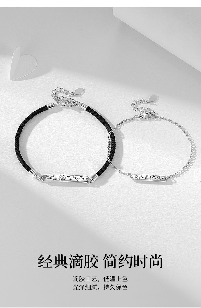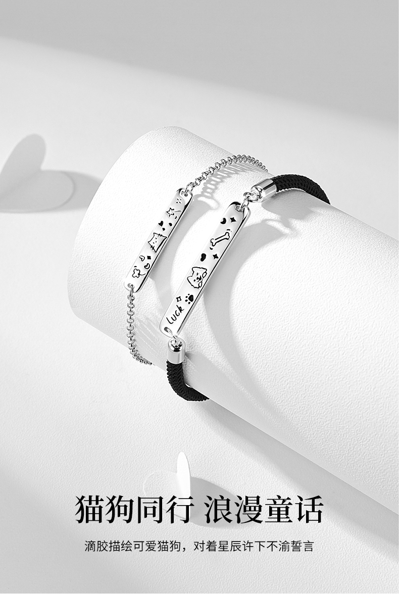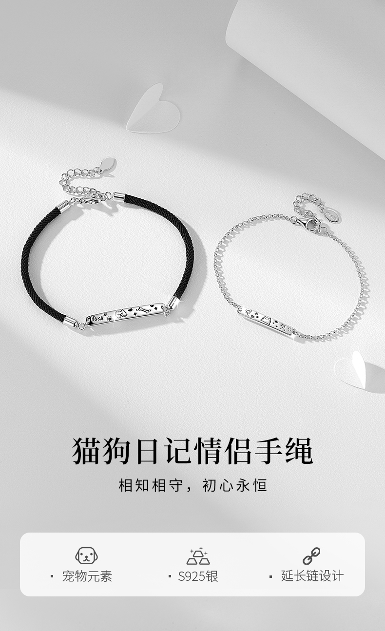 卡蒂罗/KADER 猫狗日记情侣手绳 萌趣爱恋欢喜冤家趣味学院风纯银手饰一对 214情人表白小众高级感原创百搭生日