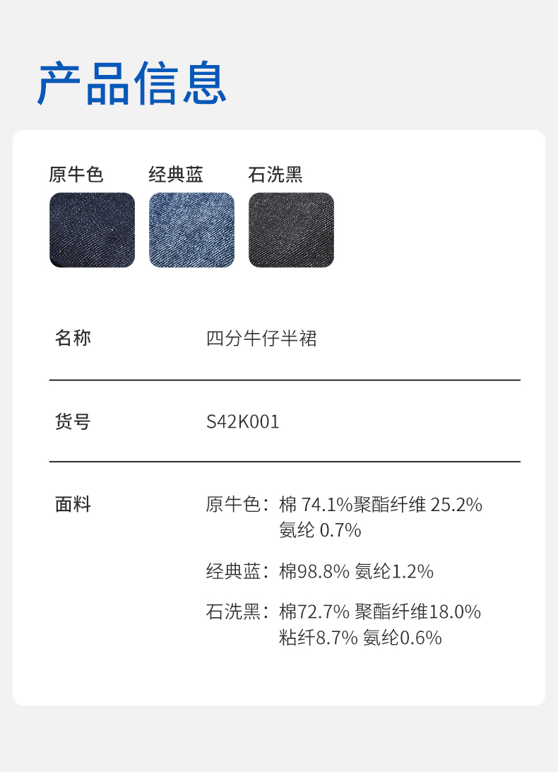 【精致原牛半裙】SPS梨形苹果形友好牛仔半裙simplepiecesS42K001
