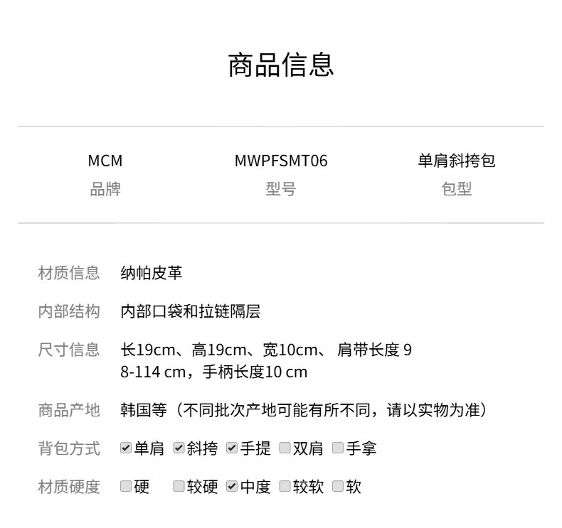 MCM 专柜款徽标印花纳帕皮革女士单肩斜挎手提包MWPFSMT06PZ001