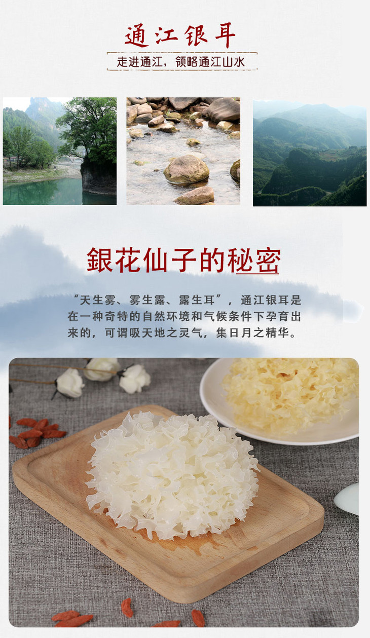 2.通江银耳与通江相伴而生,通江水质清澈干净无污染