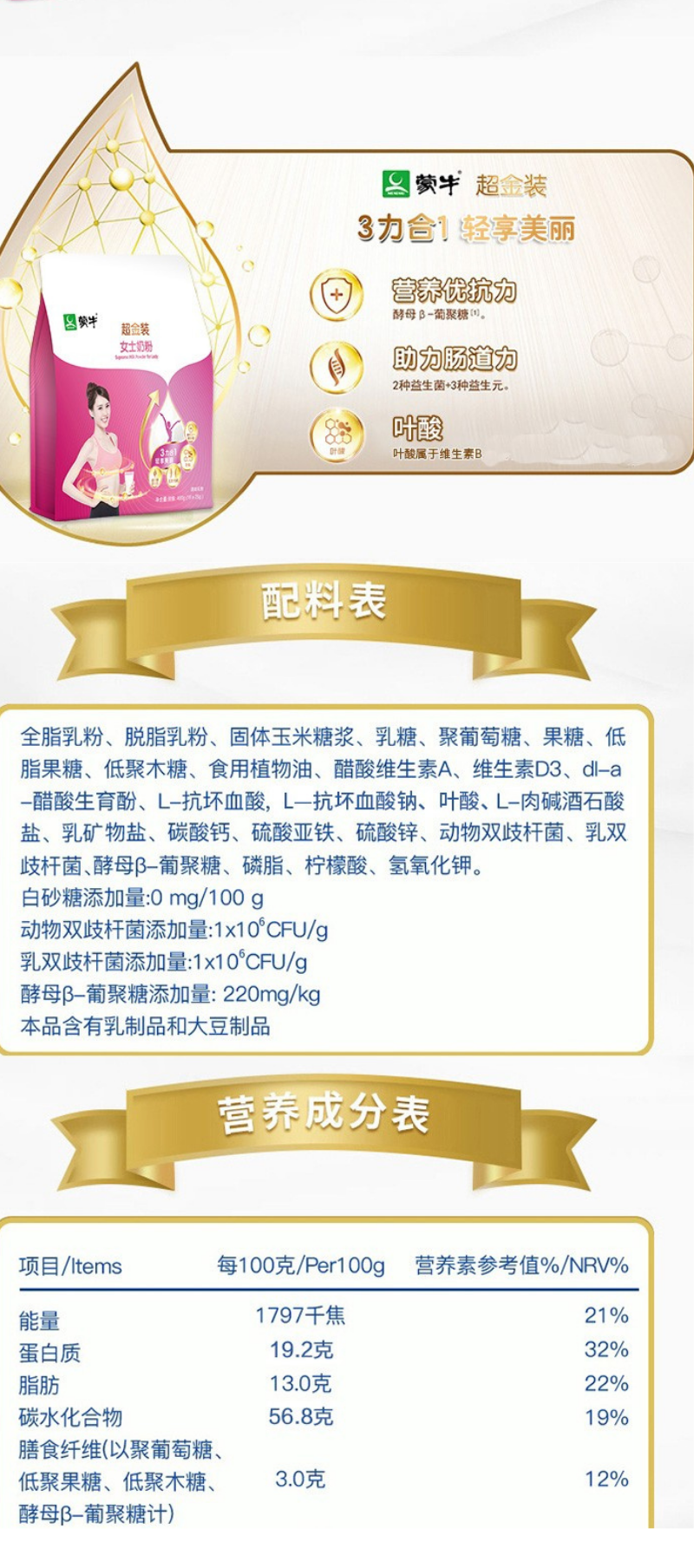 蒙牛 超金女士袋系列 400g 全国包邮 hz